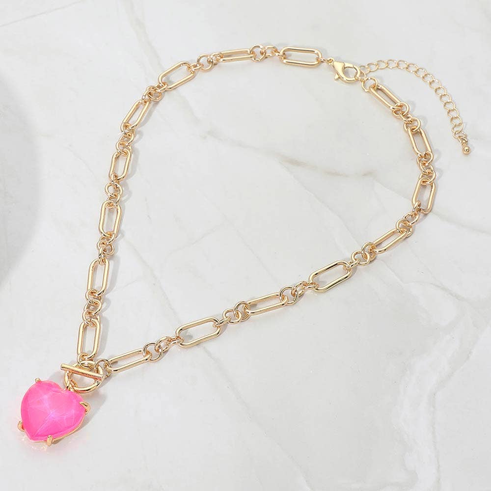 This paperclip chain necklace features a bold heart charm pendant that adds a striking focal point to a modern silhouette. Designed with an adjustable length for versatile styling, it layers easily or stands out worn alone. A stylish statement piece perfect for everyday wear, gifting, or adding a touch of romance and personality to casual or dress-ready looks.