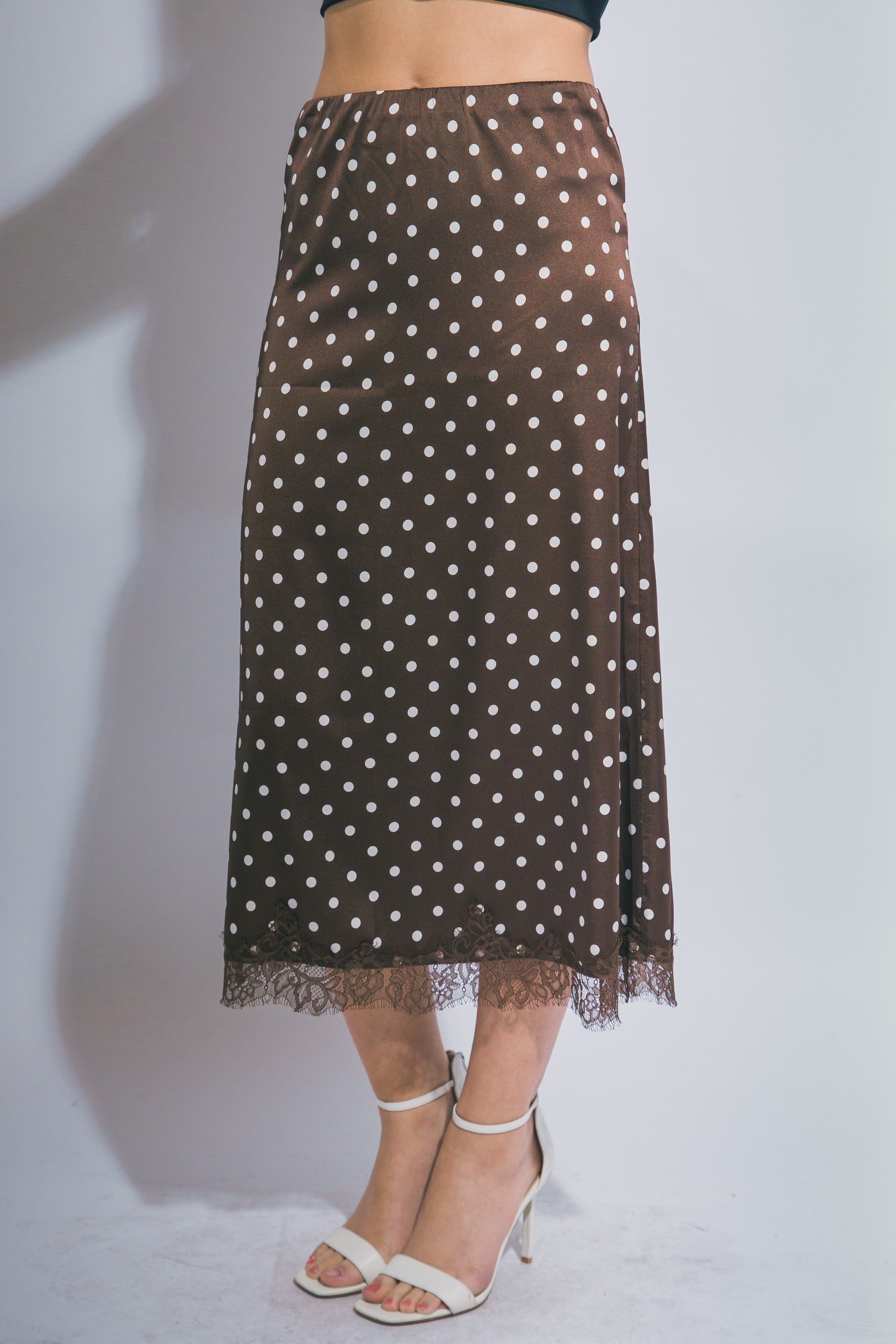 Sweet Charm Polka Dot Lace Midi Skirt - Brown