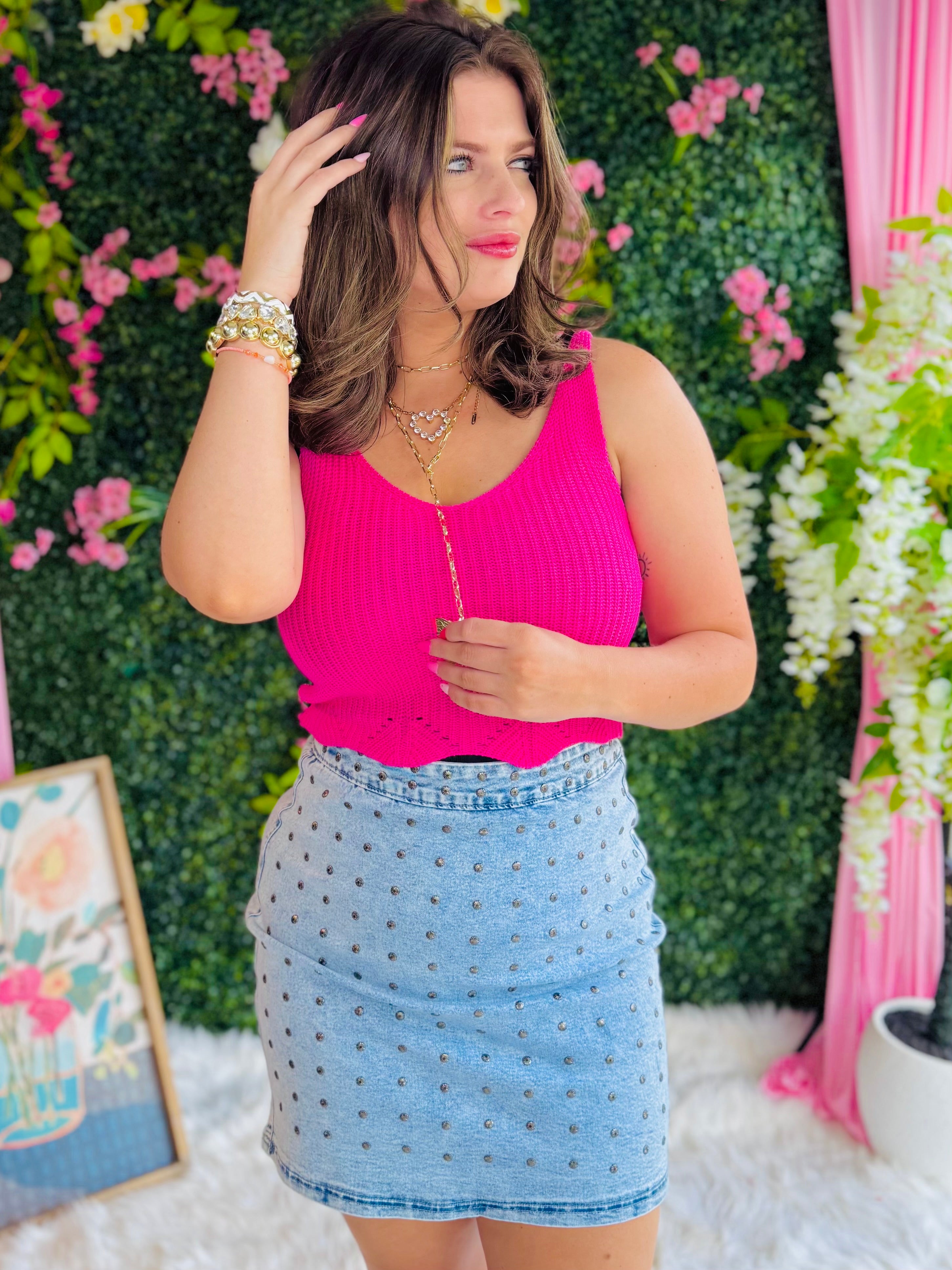 Hot Pink V-Neck Hemmed Tank