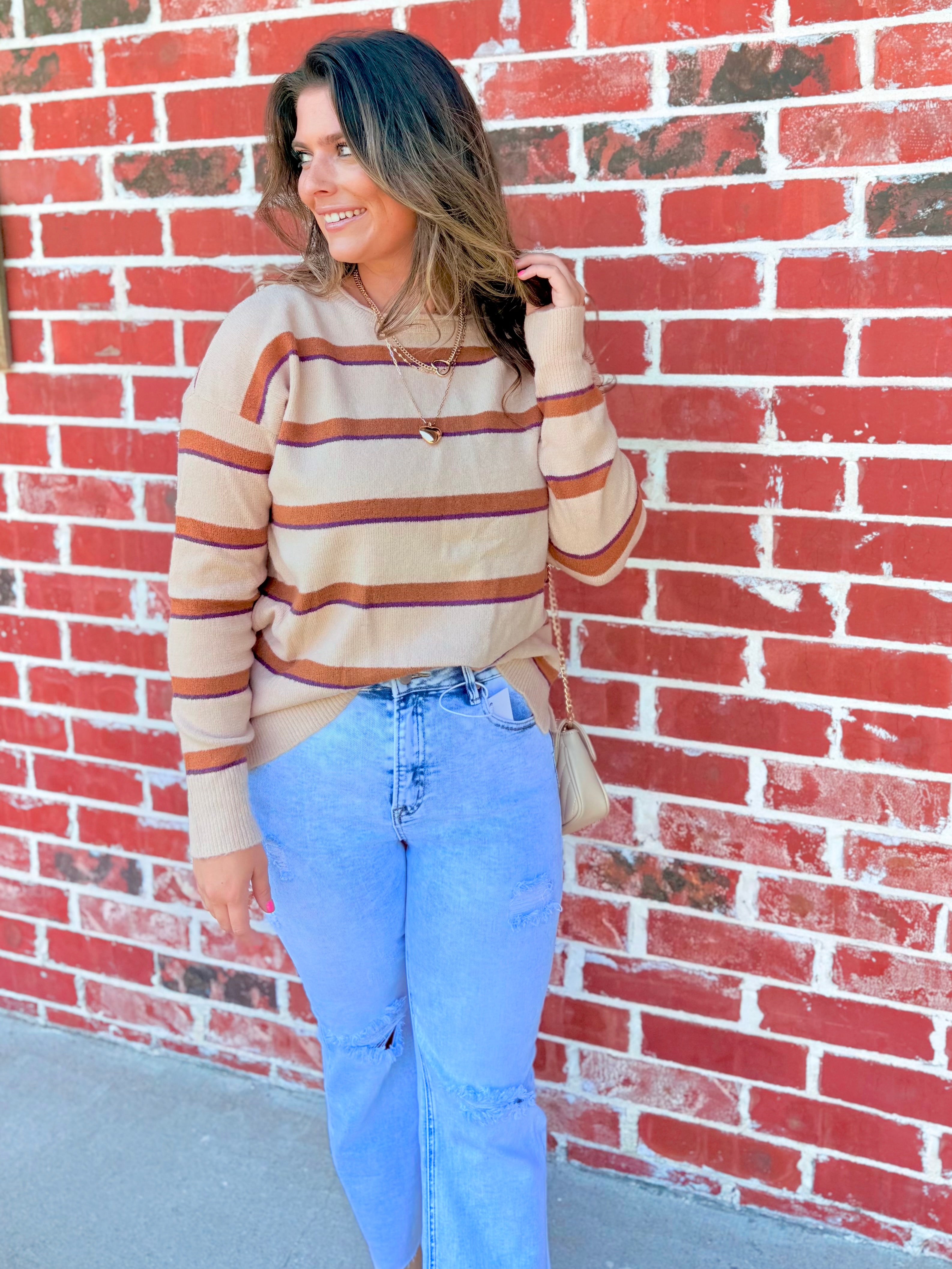 Stripe Pattern In Beige/Purple/Camel