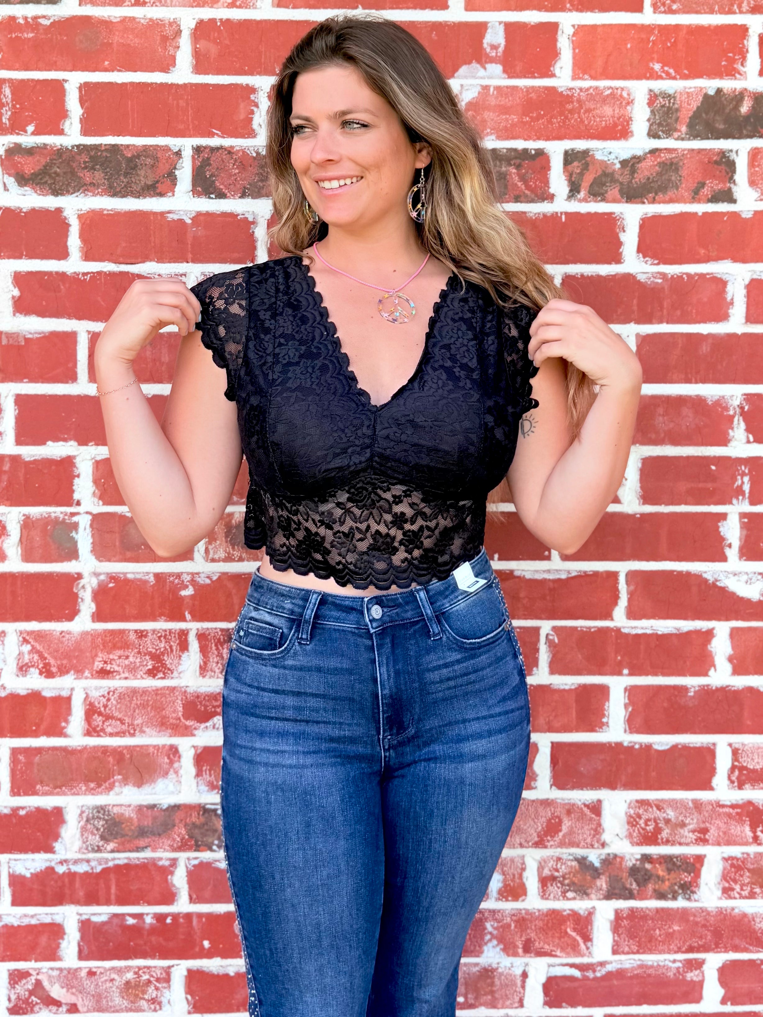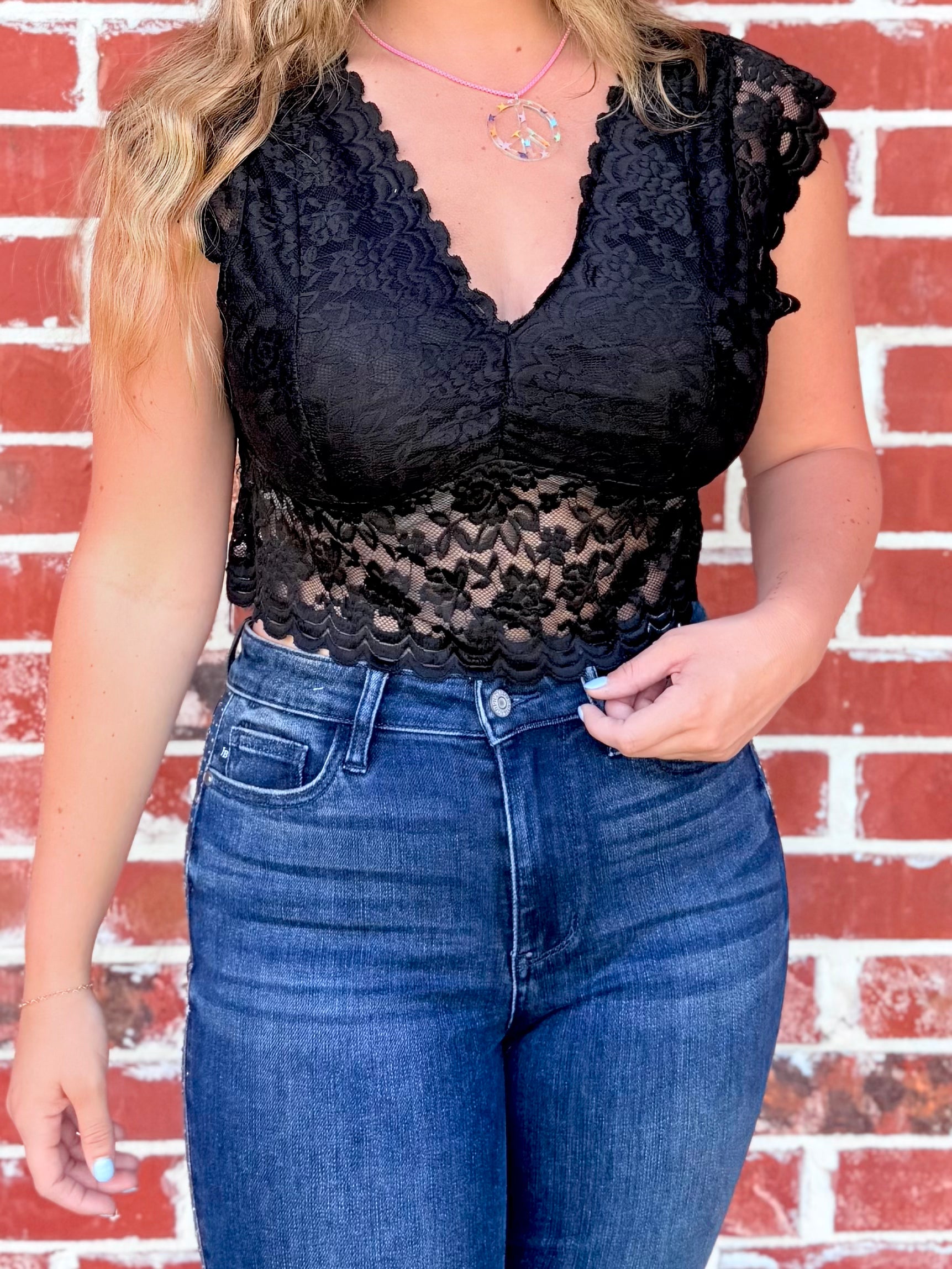 Laced in Grace Ribbed V-Neck Top 🤍✨