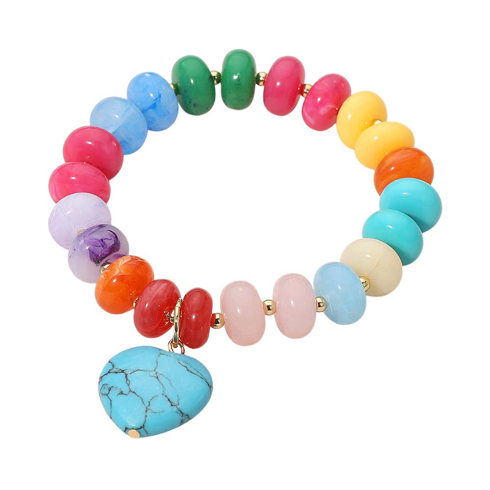 Add fun and charm to your style with this vibrant beaded bracelet, featuring a bold heart charm for a playful finish. Perfect for casual wear or gifting, this eye-catching accessory brings personality and color to any outfit, making it a stylish choice for jewelry lovers of all ages.