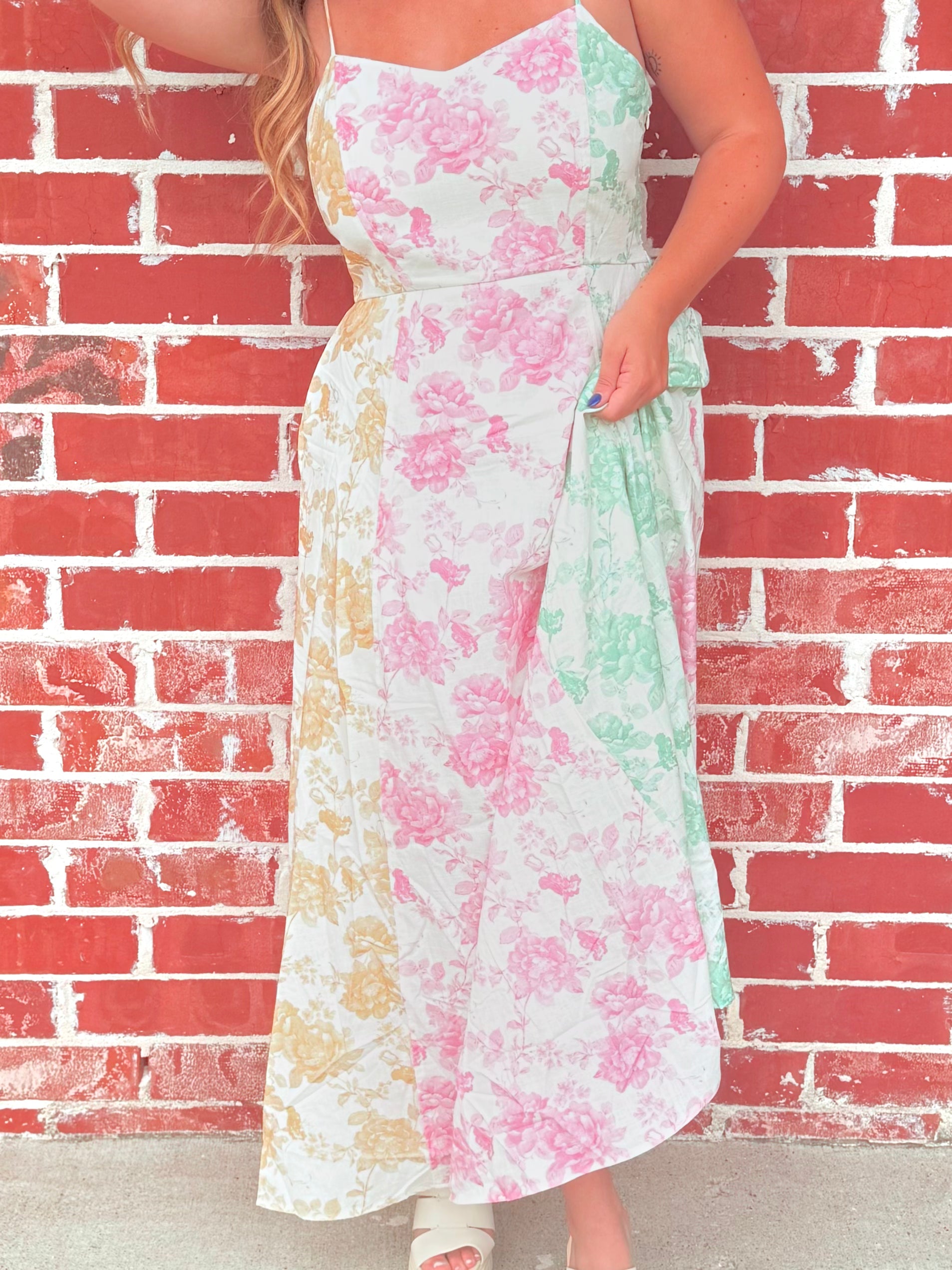 Make a statement in this stunning maxi dress, covered in vibrant floral prints that feel like a walking work of art.