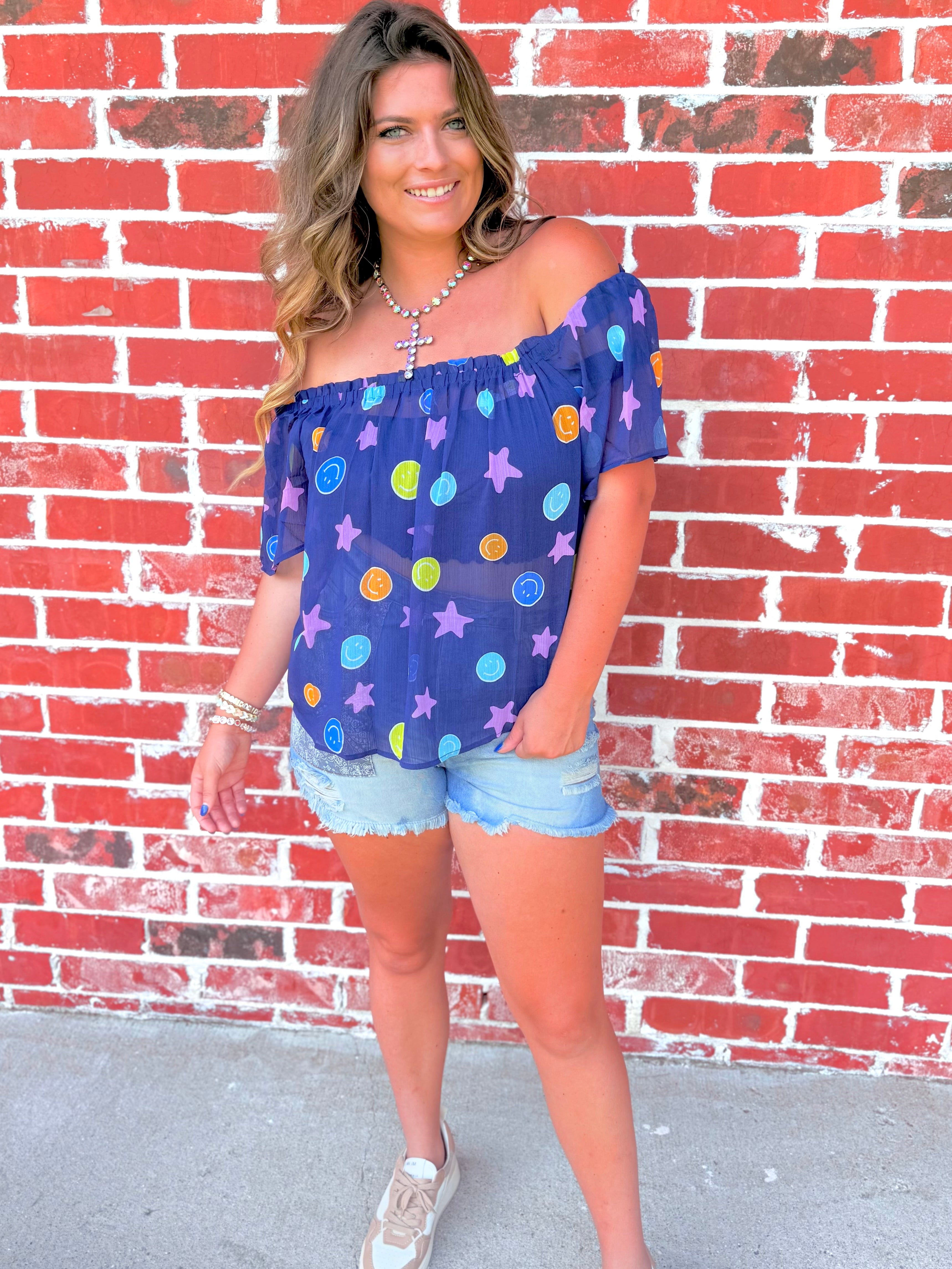 Bring the joy with the Sunbeam Smiles Top — a flirty, carefree piece that radiates playful charm and breezy comfort. Made from lightweight, sheer Yoru chiffon, this off-the-shoulder favorite is perfect for sunny days, festivals, or just spreading good vibes.