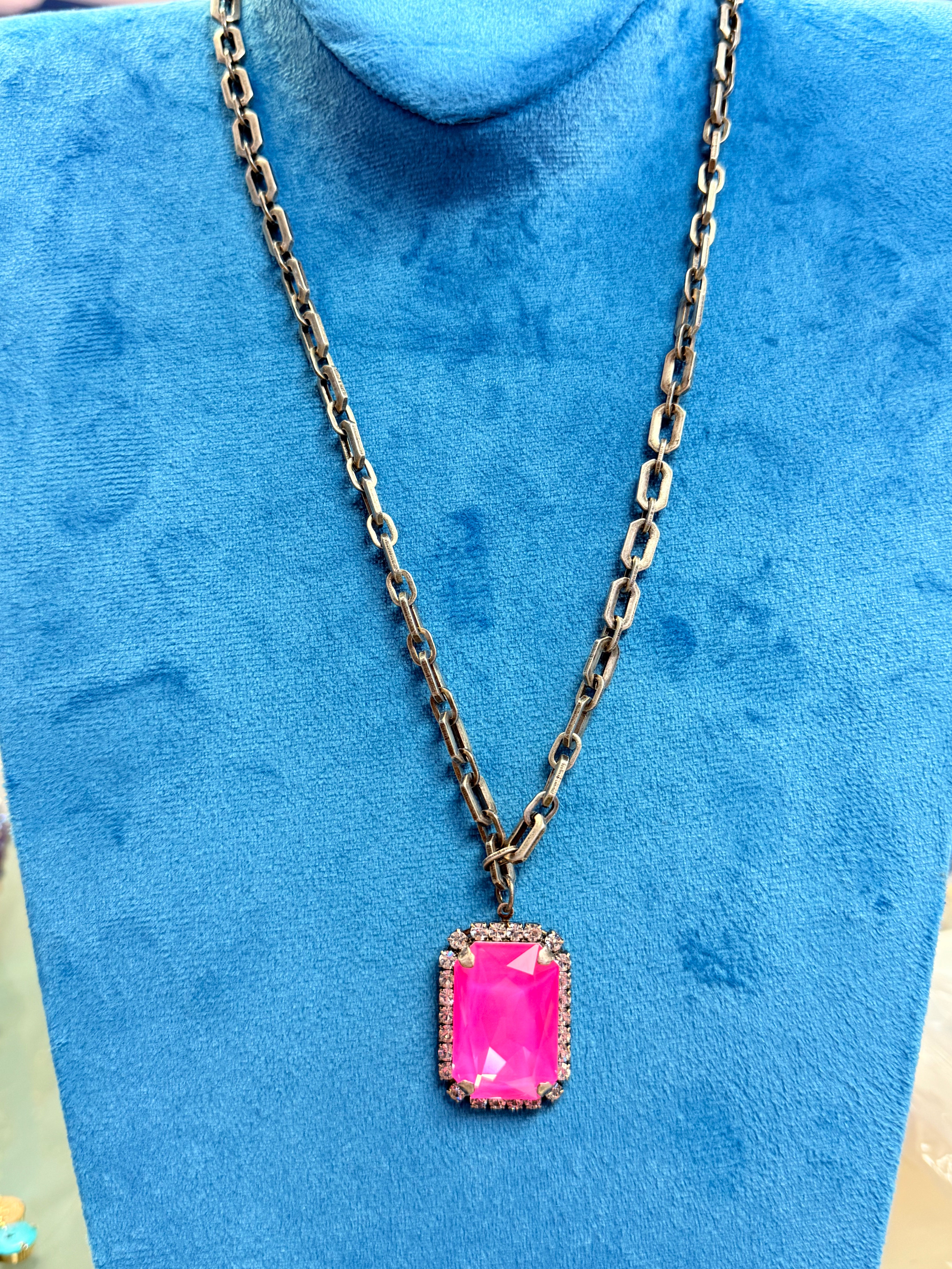 PREORDER Mini Soleil Necklace in Antique Silver/Electric Pink - Tova