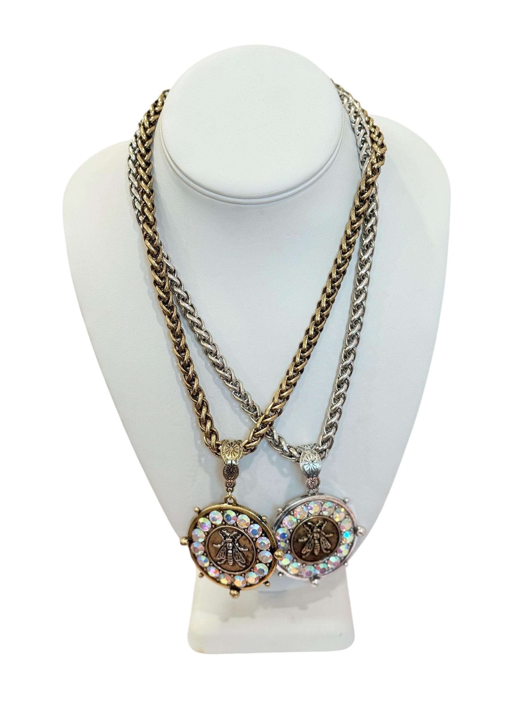 Rule your style hive with the Queen Bee Medallion Necklace! Featuring a detailed bee emblem on a gleaming gold medallion, this necklace adds a touch of royalty and charm to any outfit. Perfect for layering or wearing solo, it’s a timeless piece that buzzes with elegance and confidence.