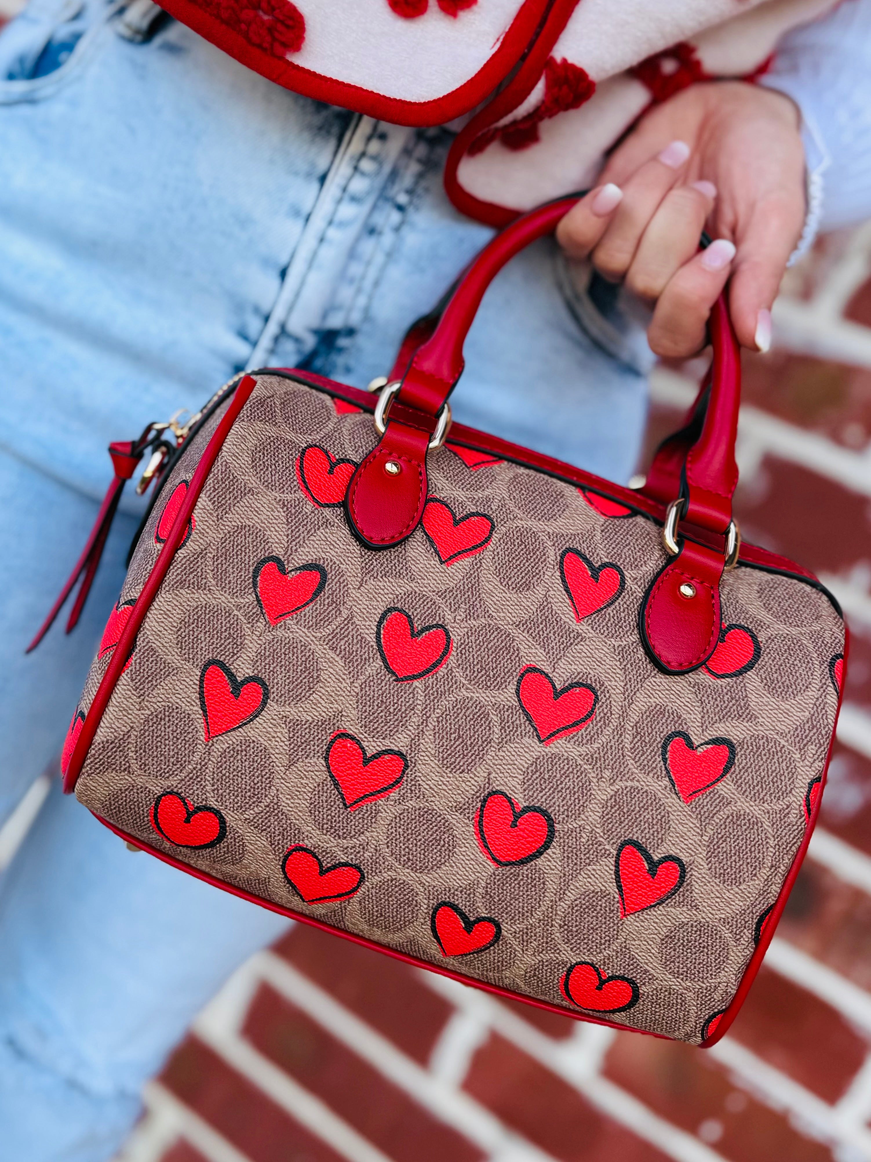 Feminine and chic, this heart monogram shoulder bag adds the perfect touch of charm to your everyday looks. Designed with an allover heart monogram print, it features a structured shoulder bag silhouette and comes with a matching wallet for easy organization. Compact yet functional, it’s the ideal accessory for carrying your essentials in sweet style.