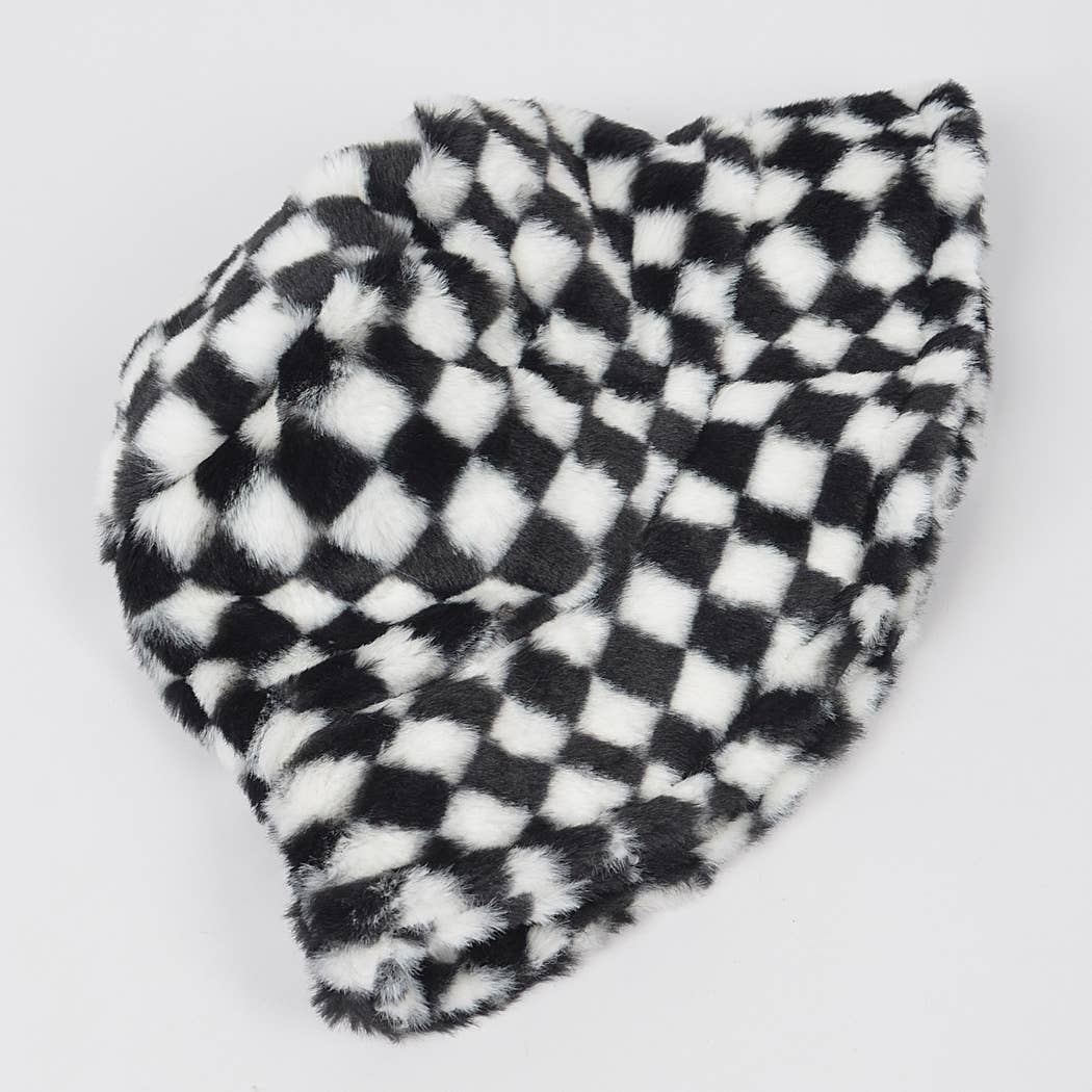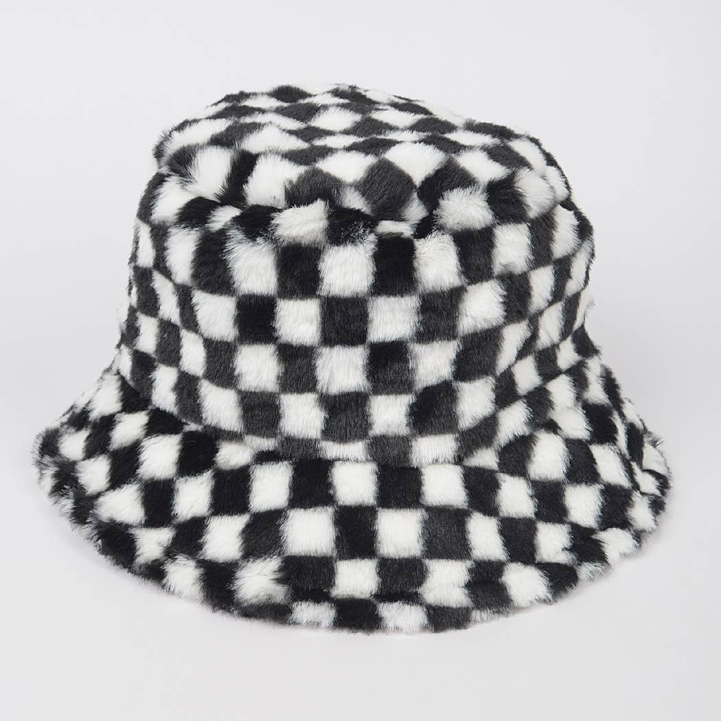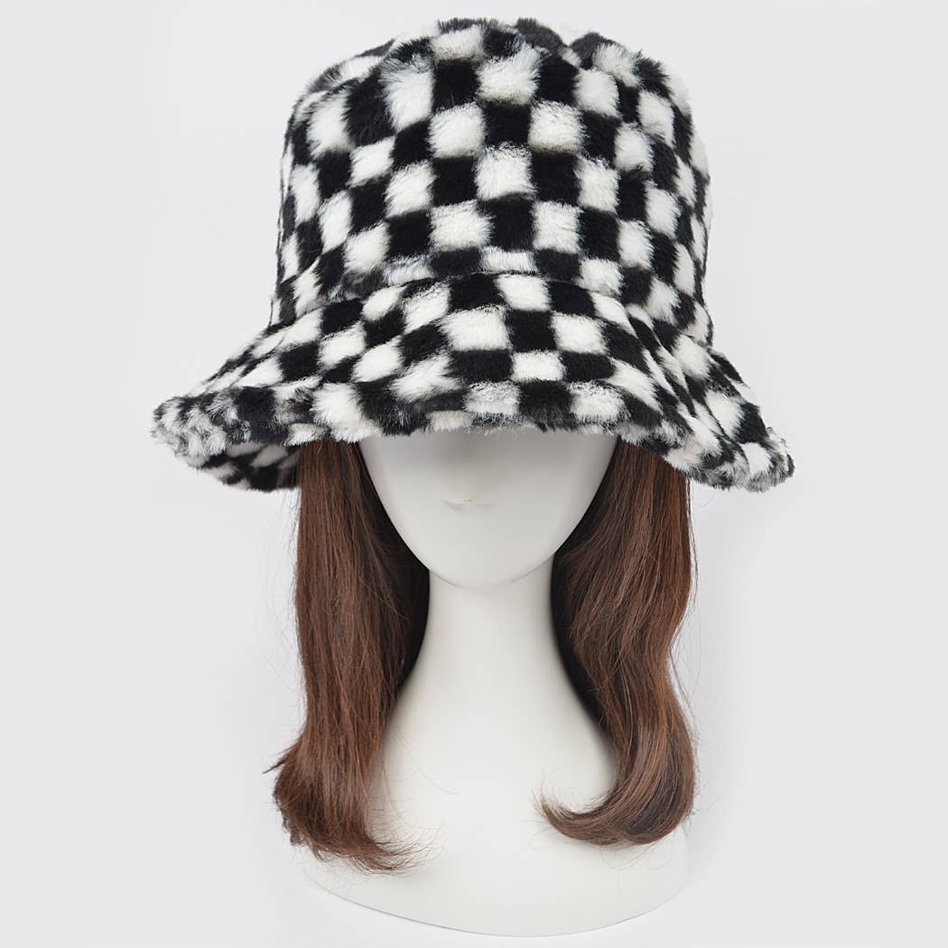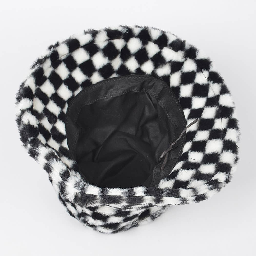 Cozy Check Faux Fur Bucket Hat 🩶✨