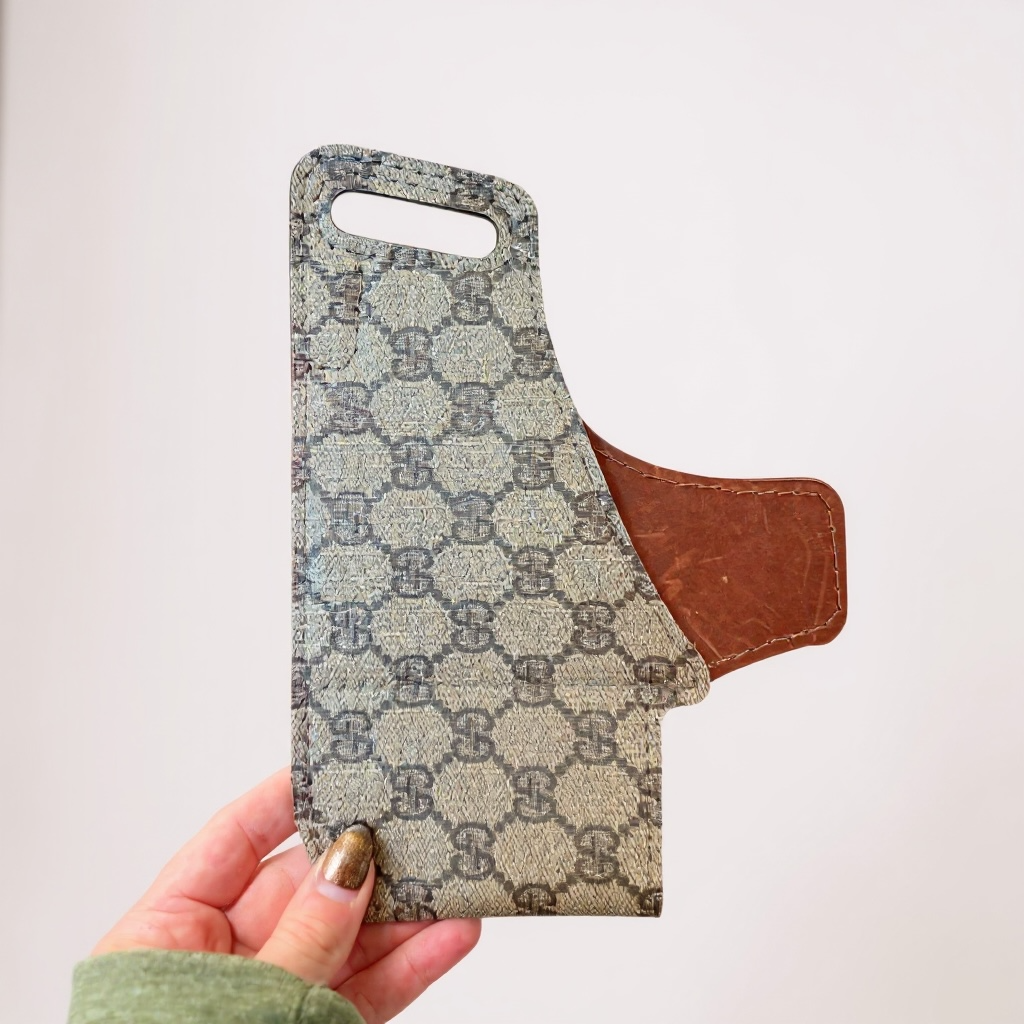 Select designs incorporate authentic upcycled Gucci materials, thoughtfully repurposed to create a unique blend of luxury and western craftsmanship. Because each bag is handmade using natural materials, no two pieces are exactly alike—variations in texture, color, and pattern are part of what make every bag special.