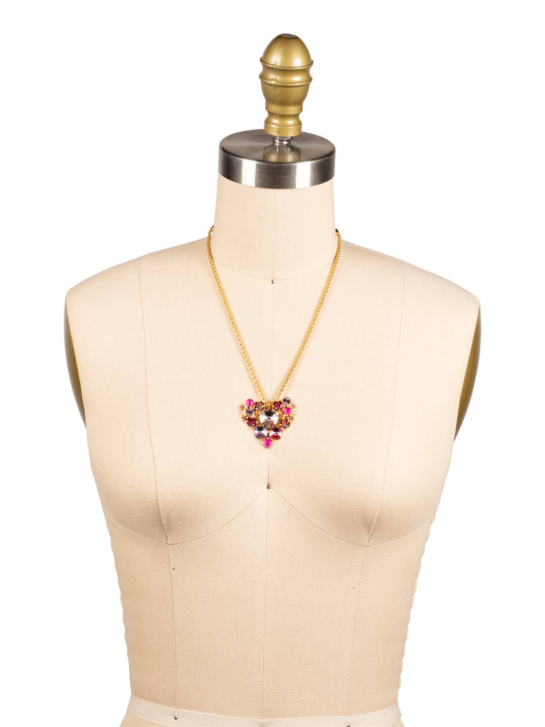 The Jolie Pendant Necklace features an assorted-cut crystal cluster heart pendant on an adjustable, rounded snake chain, secured with a lobster claw clasp. (16-20 inches). From Sorrelli's Panama Rose collection in our Bright Gold-tone finish. (SKU: NFZ7BGPRO)