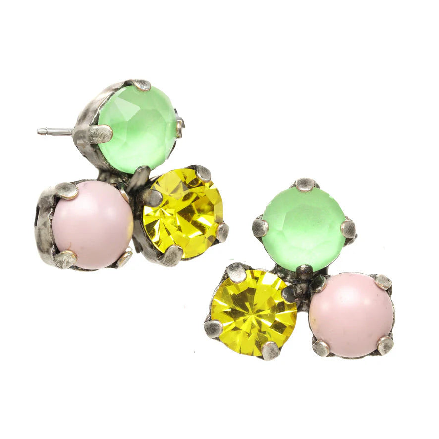 Stun the crowd with the Mini Ines Earrings! Featuring a luxurious antique silver plating, brass base metal, and exquisite crystals and pearls, these sparkly 0.5" studs are sure to make heads turn! Made in Canada.