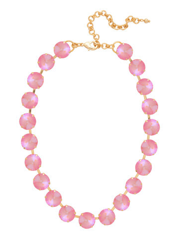 The Nadine Tennis Necklace features repeating round cut rivoli crystals with an adjustable extension chain, secured with a lobster claw clasp. (14-18 inches)