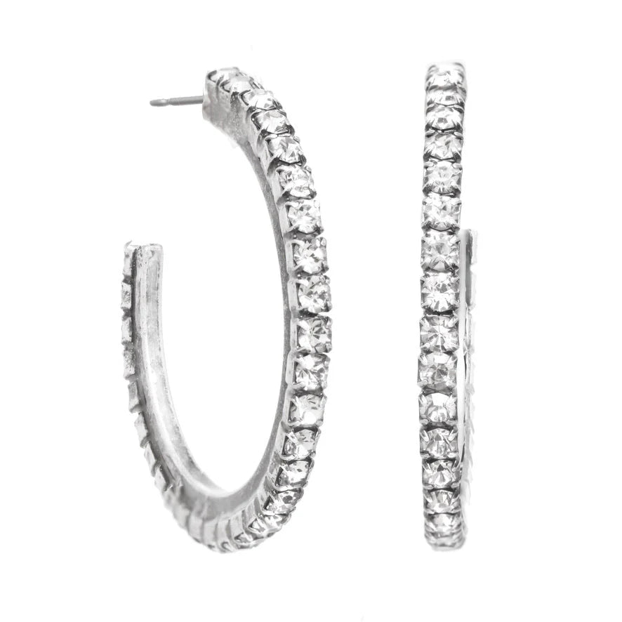 Light up your looks with these Slim Hoop Earrings! Adorned with high quality crystals, these earrings sparkle and shine with the light gold plating on a brass base that you can trust to last. Plus, the surgical steel posts will keep them comfortable on your ears all day long.