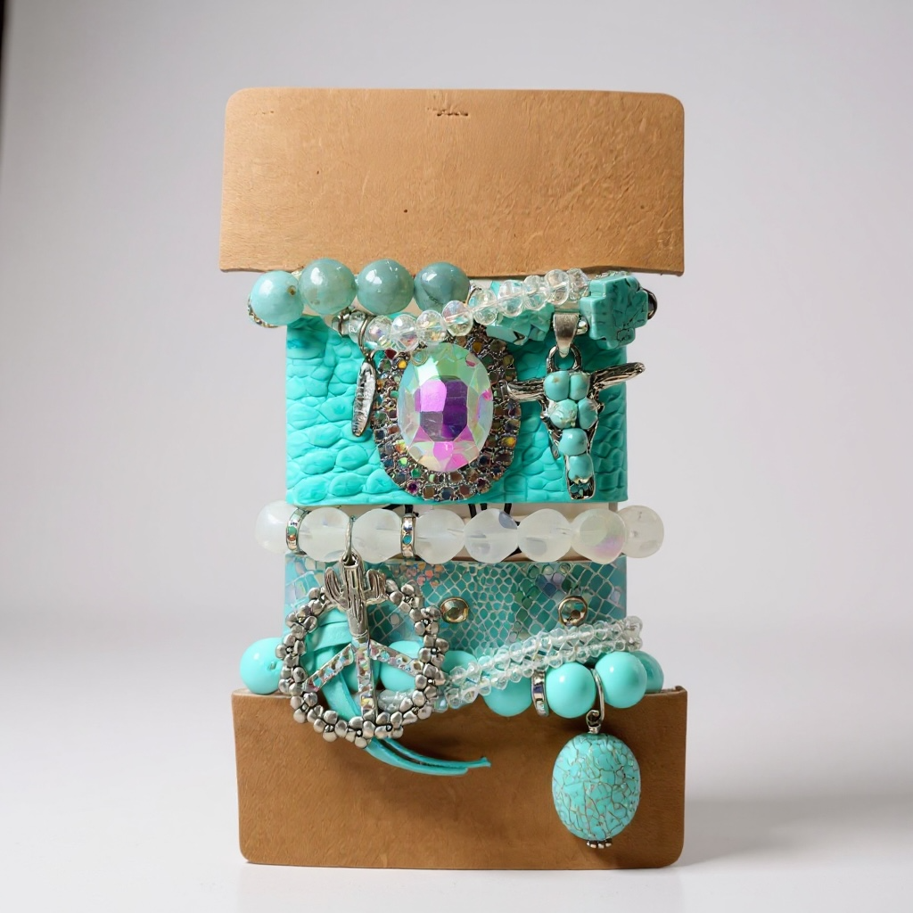 From bold statement necklaces to stacked beaded bracelets and leather-accented designs, this collection blends rustic charm with modern western flair. These pieces are made to be worn, loved, and lived in—perfect for adding character to everyday outfits or making a statement at your next event.