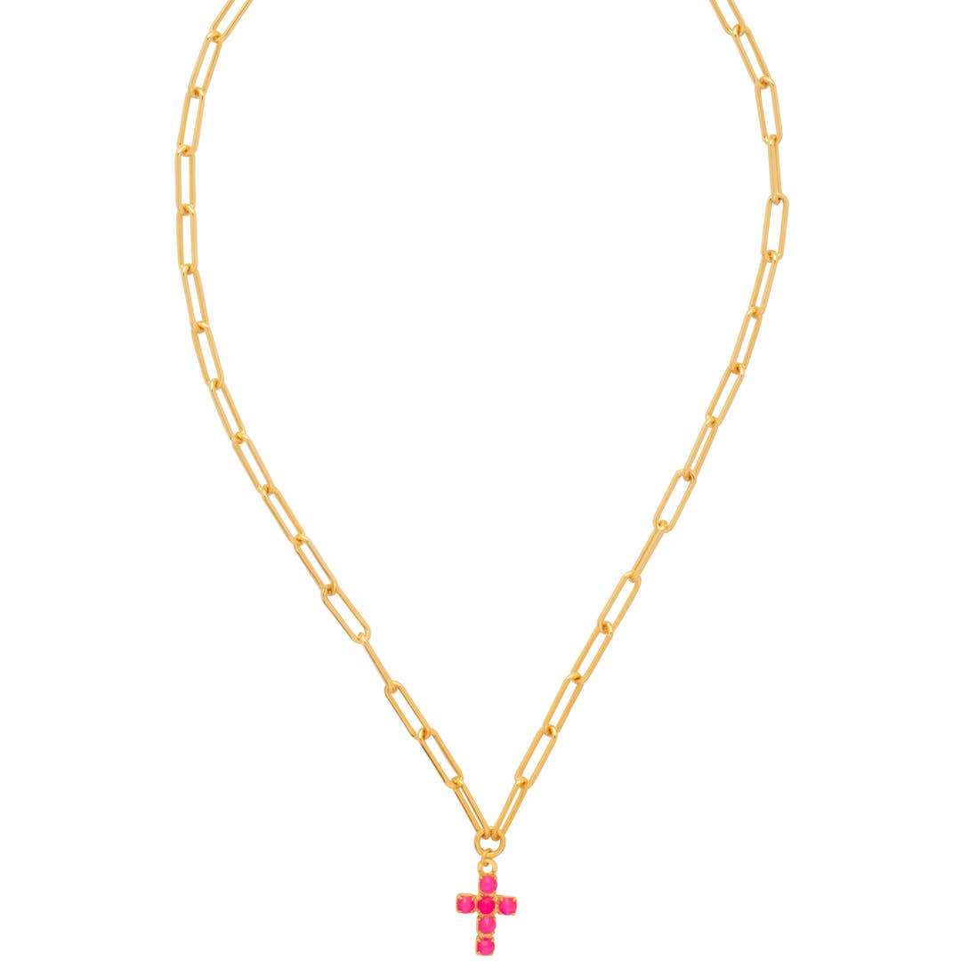 Carly Cross Pendant Necklace - NGE2BGETP: Electric Pink