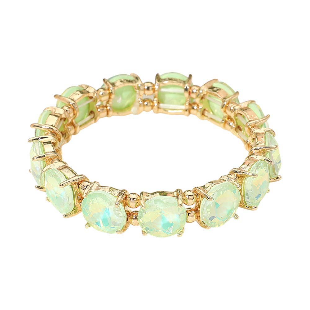 Round Stone Cluster Beaded Stretch Evening Bracelet
