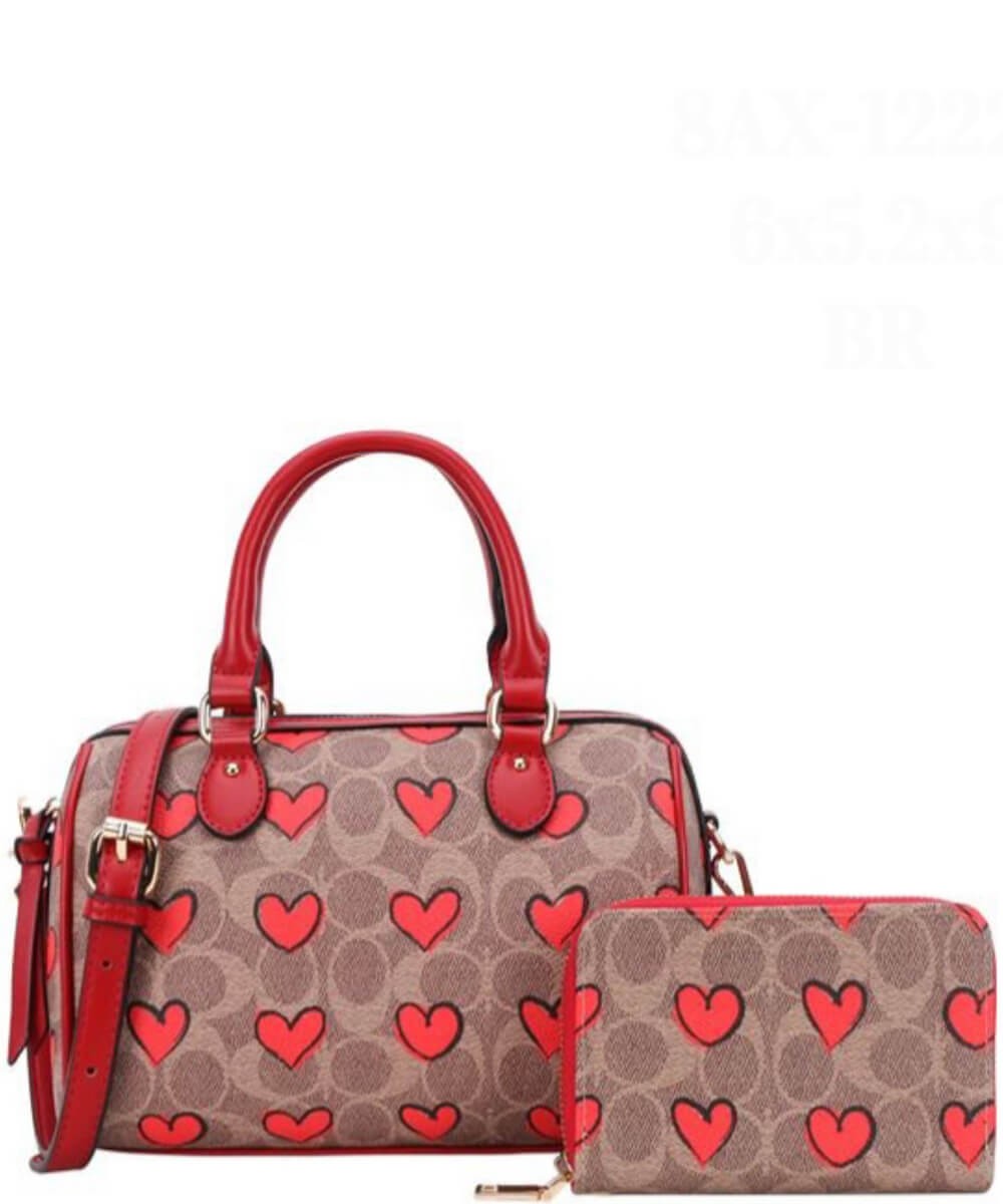 Feminine and chic, this heart monogram shoulder bag adds the perfect touch of charm to your everyday looks. Designed with an allover heart monogram print, it features a structured shoulder bag silhouette and comes with a matching wallet for easy organization. Compact yet functional, it’s the ideal accessory for carrying your essentials in sweet style.