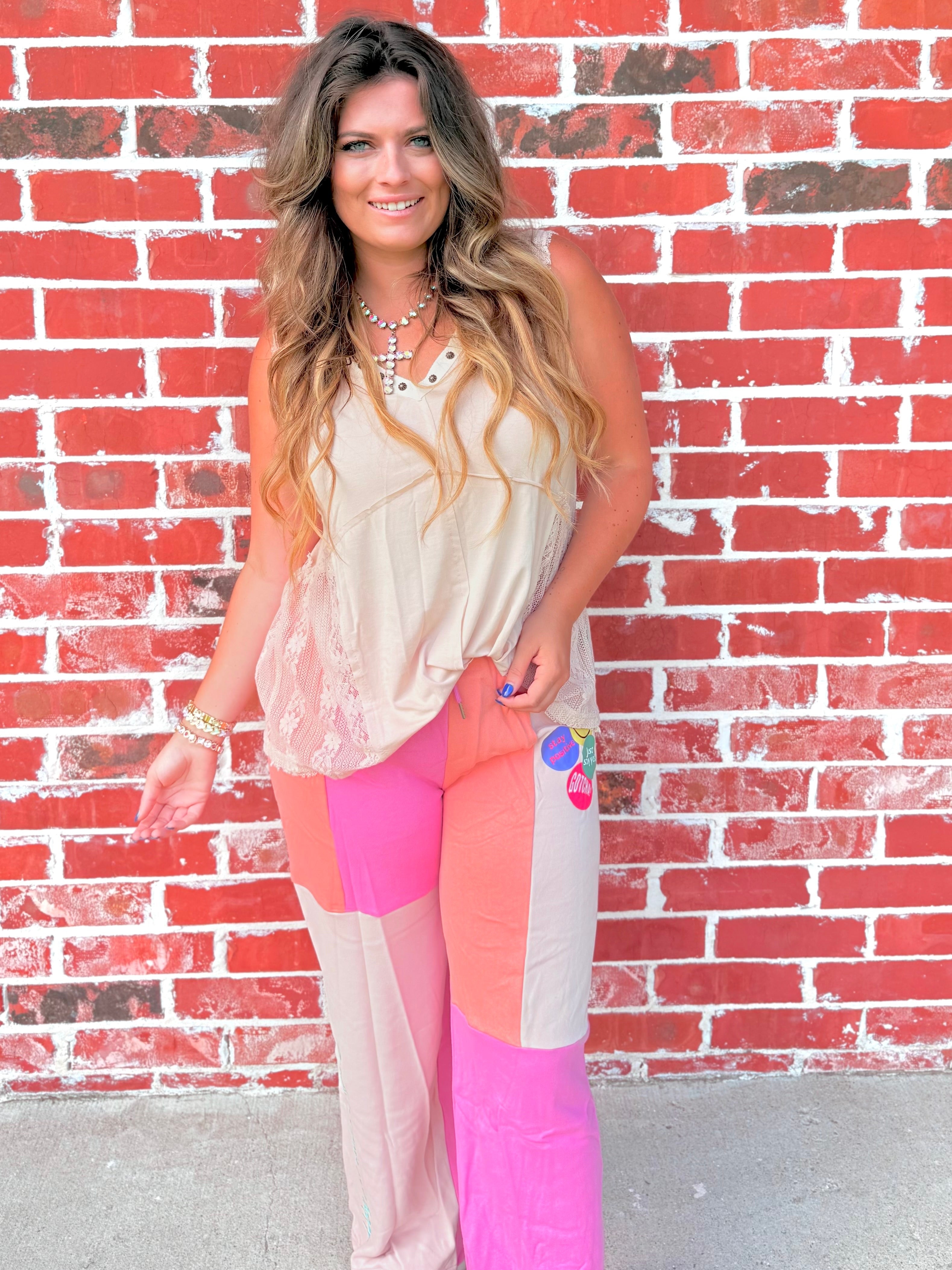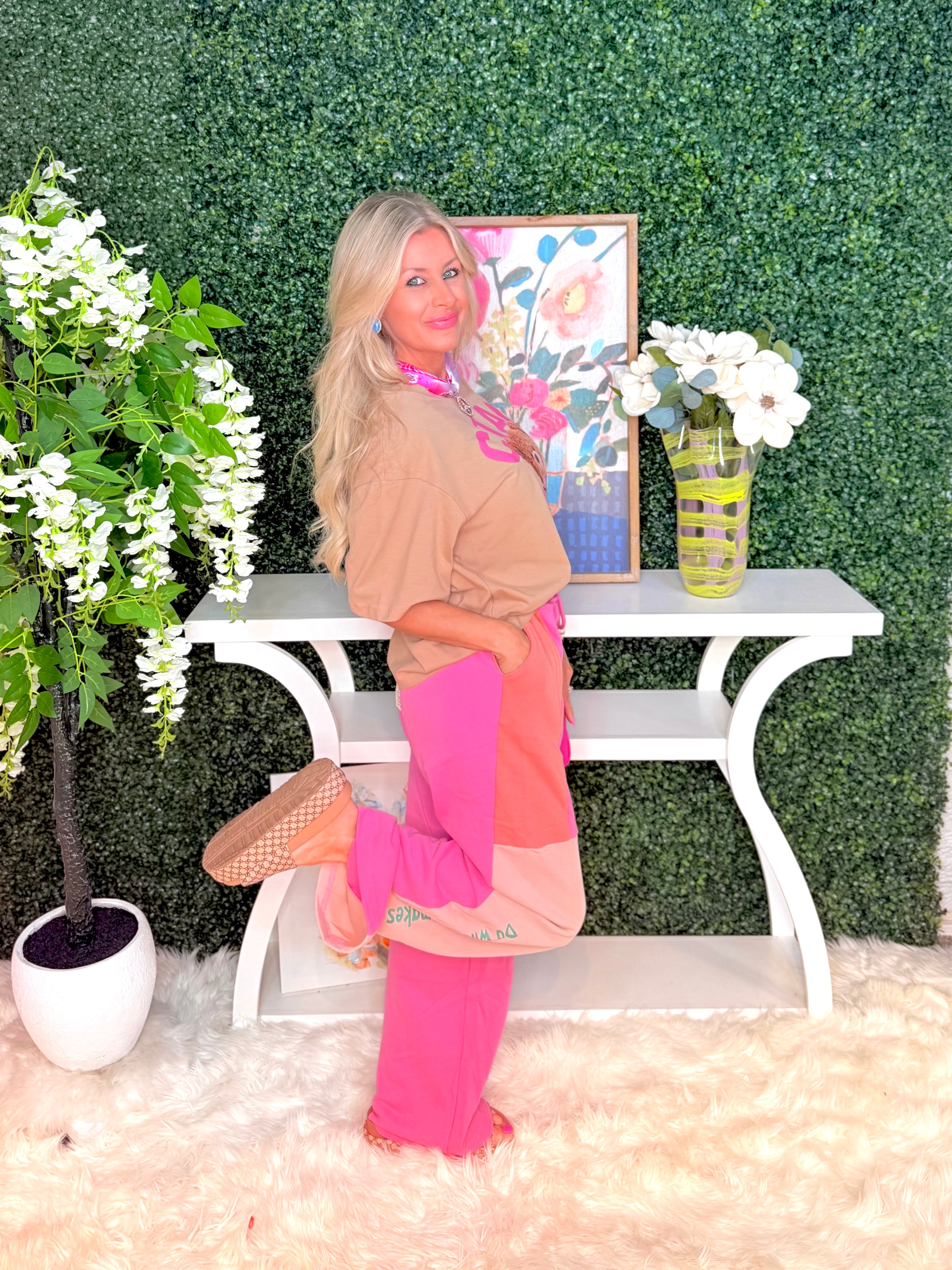 Meet your new lounge-day essential: the Weekend Drift Pants — where comfort meets cool. Designed with a soft terry feel and laid-back silhouette, these color block wide-leg pants are perfect for everything from coffee runs to cozy nights in.