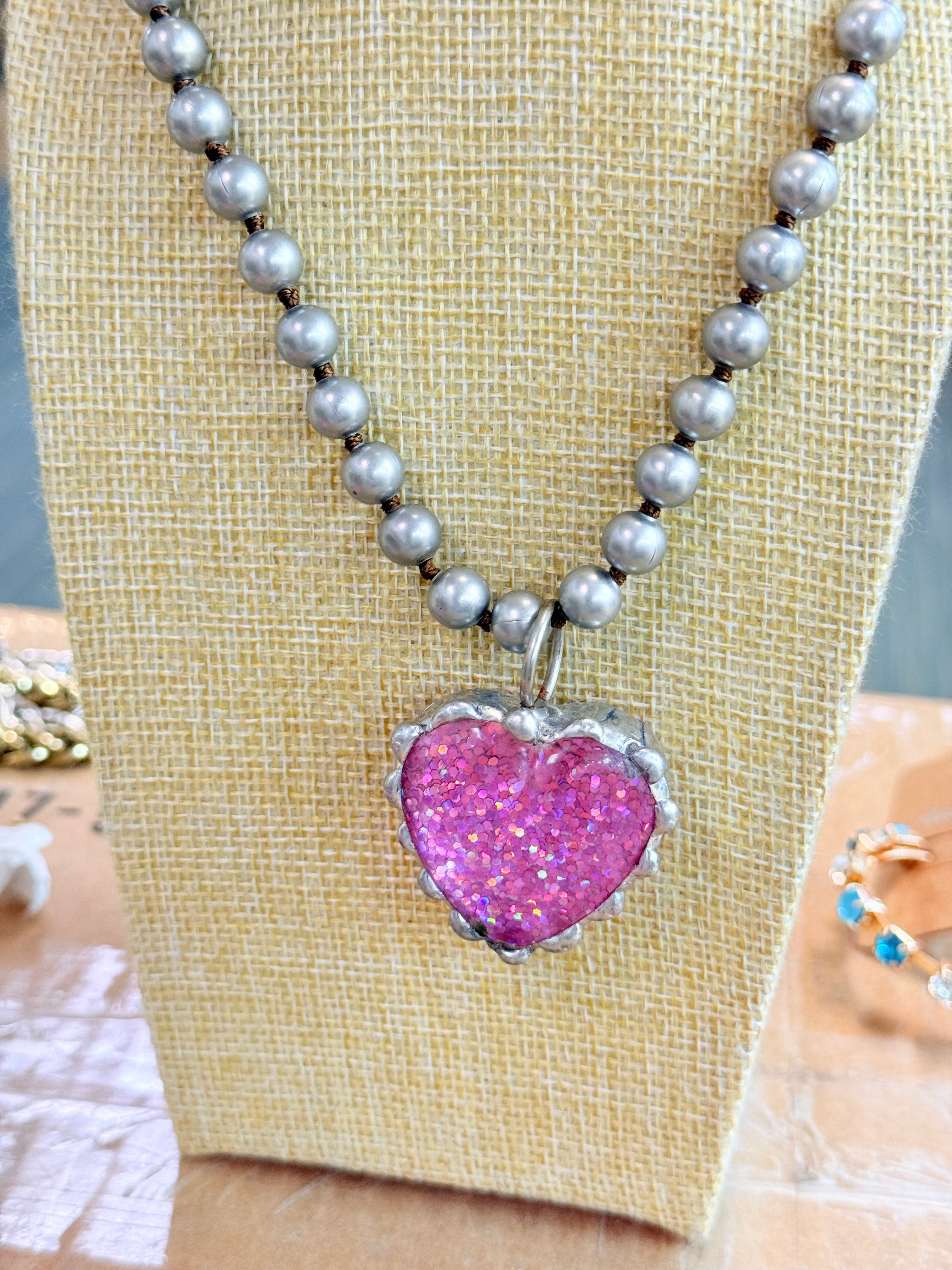 Sparkle Heart Silver Beaded Necklace