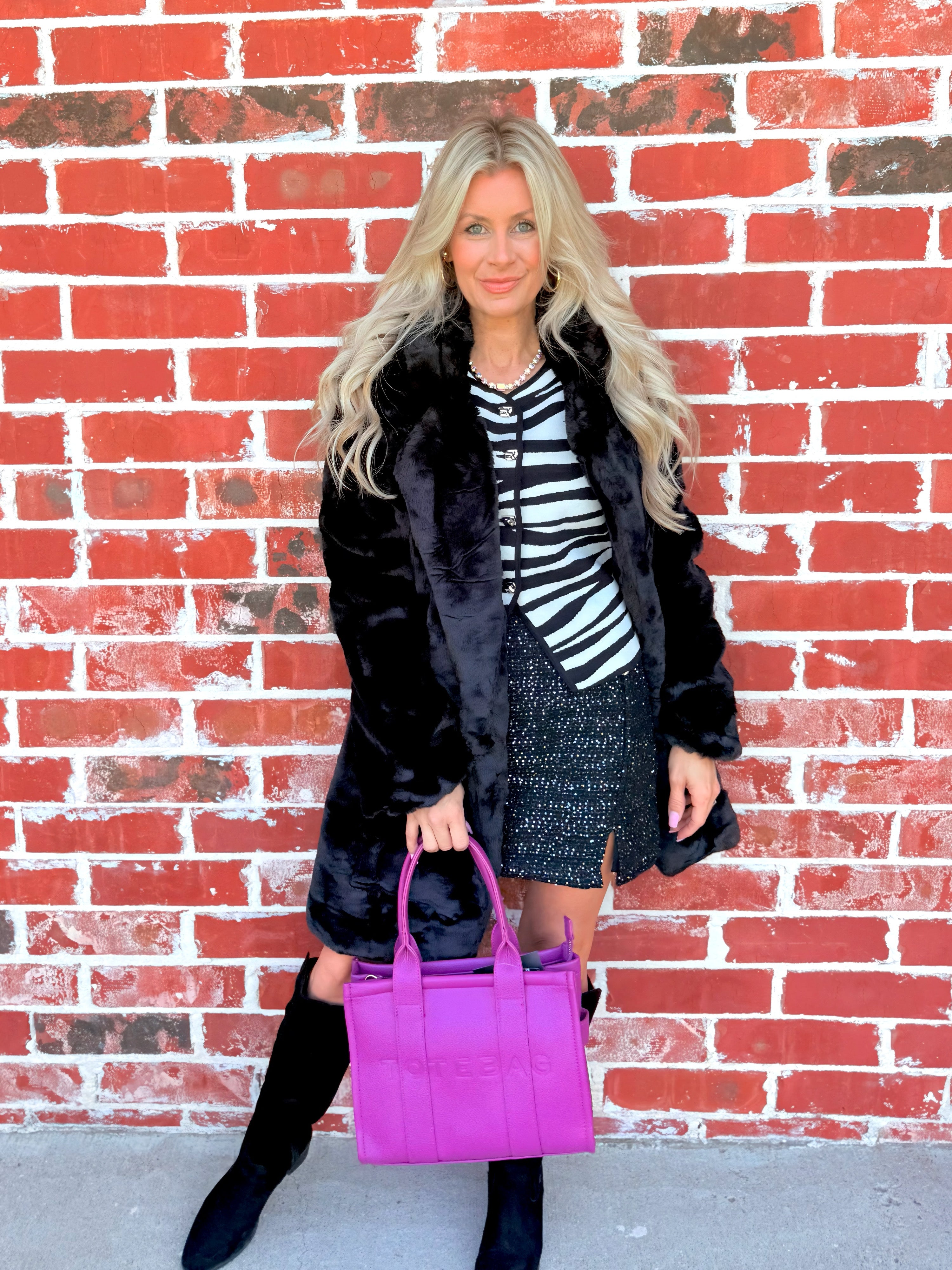 Sparkle meets sophistication in the Midnight Glow Sequin Tweed Mini Skirt ✨. Designed with a sleek side slit ➗, shimmering sequin tweed fabric 🌟, and luxe golden button accents 👑, this lined mini skirt brings instant elegance to your look. Finished with welt pockets 🙌 and a hidden side zipper for a flattering fit, it’s the perfect piece to take you from holiday parties 🎉 to chic nights out 🌙.