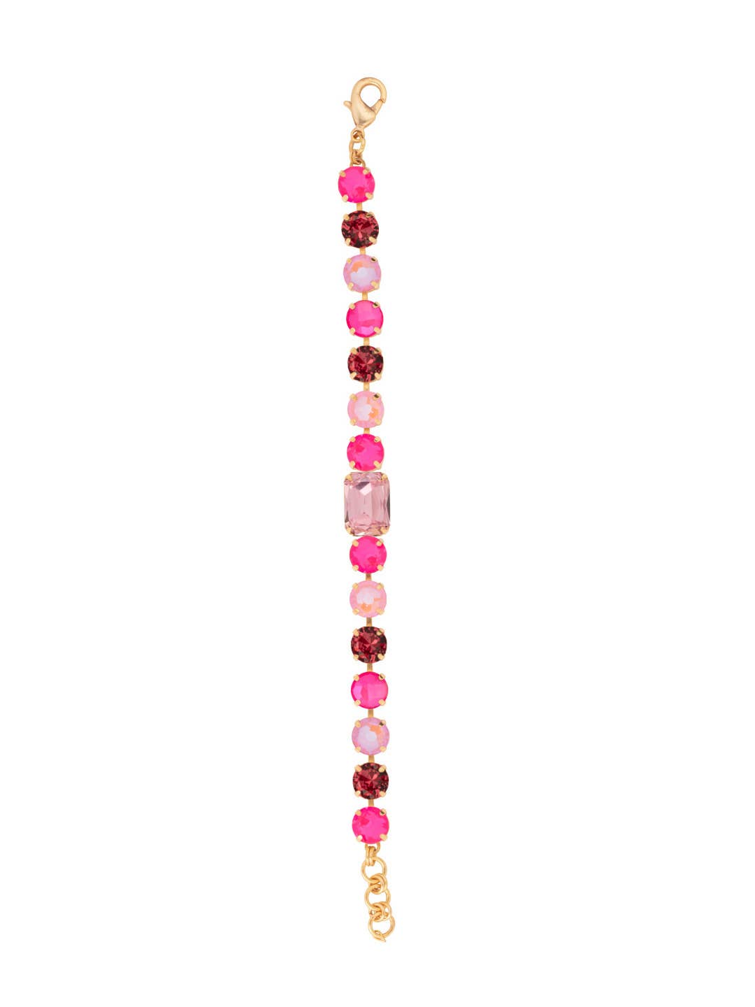 This classic line bracelet features sparkling round-cut crystals, elegantly highlighted by a single emerald-cut crystal at the center. Adjustable for the perfect fit, it's secured with a lobster claw clasp for added elegance and ease. From Sorrelli's Big Flirt collection in our Bright Gold-tone finish. (SKU: BFS1BGBFL)