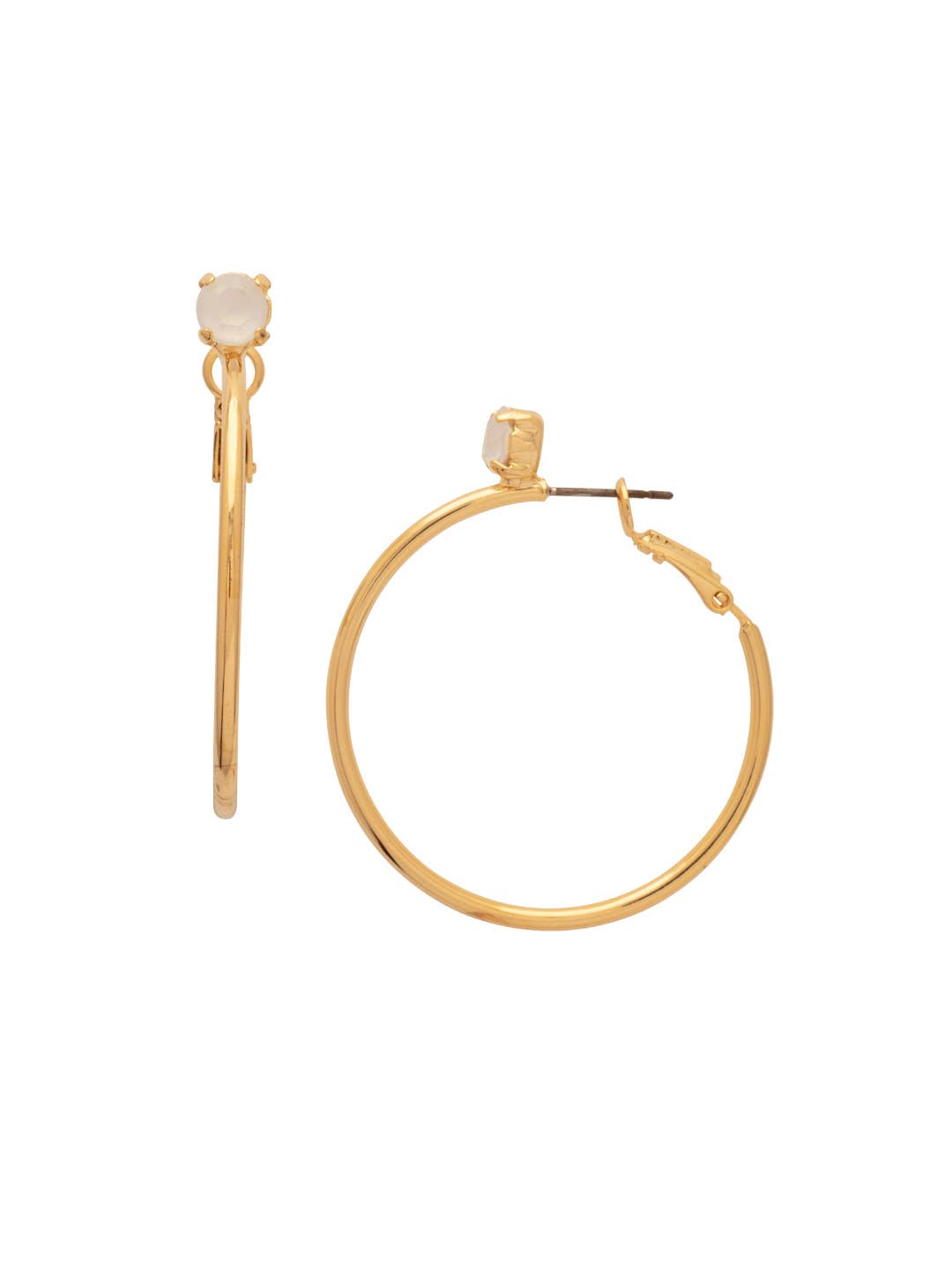 The Mini Serafina Hoop Earrings feature a classic metal hoop with a single round cut crystal. From Sorrelli's Ultra White collection in our Bright Gold-tone finish. (SKU: EFJ1BGUW)