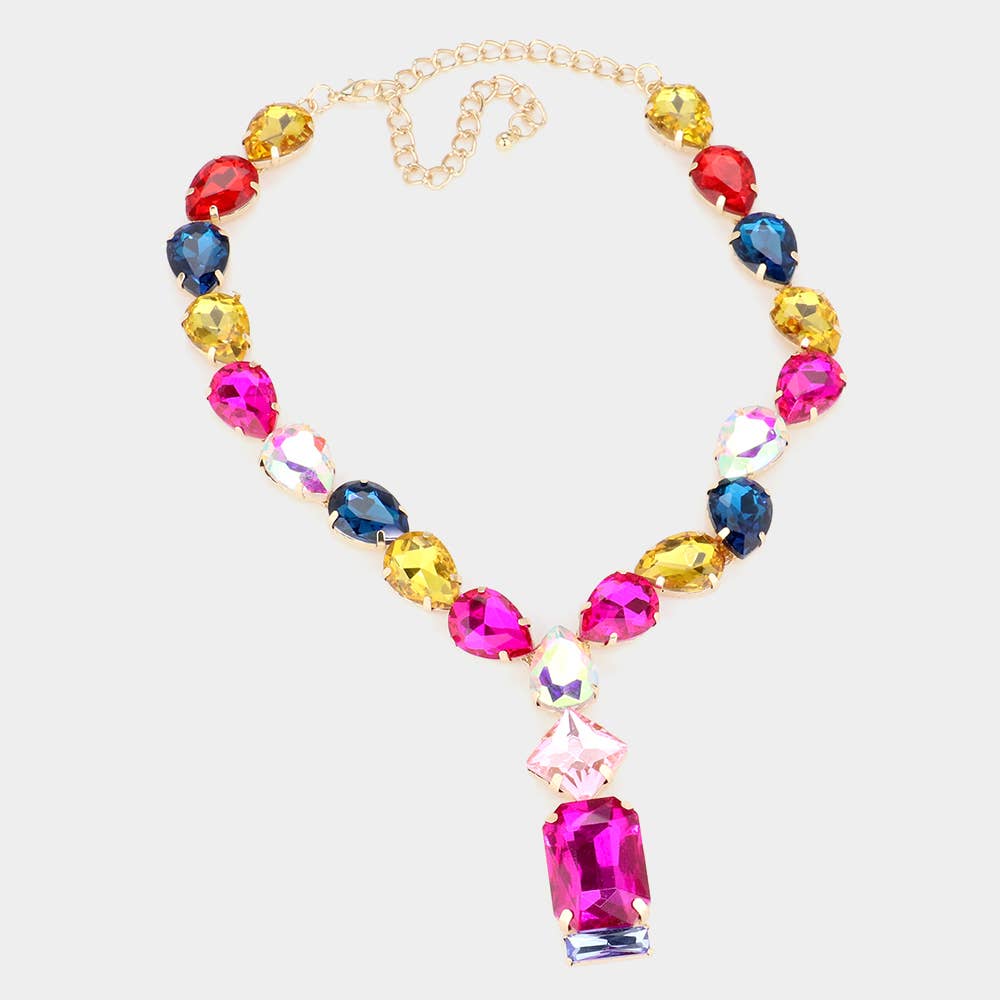 Emerald Cut Cluster Teardrop Pendant Necklace - MULTI