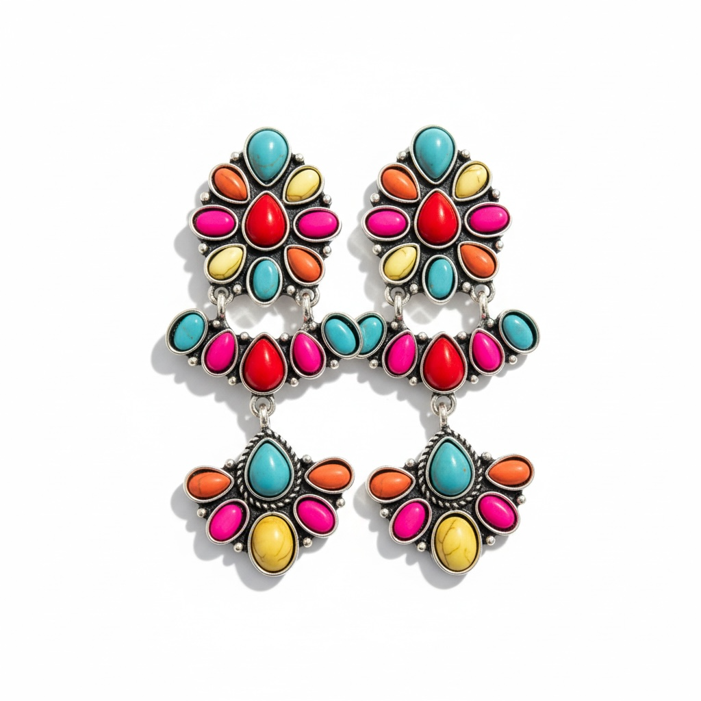 Perfect for rodeo outfits, country concerts, everyday wear, and western-inspired fashion, these earrings are ideal if you're searching for squash blossom earrings, western jewelry, classic statement earrings, or boutique accessories.
