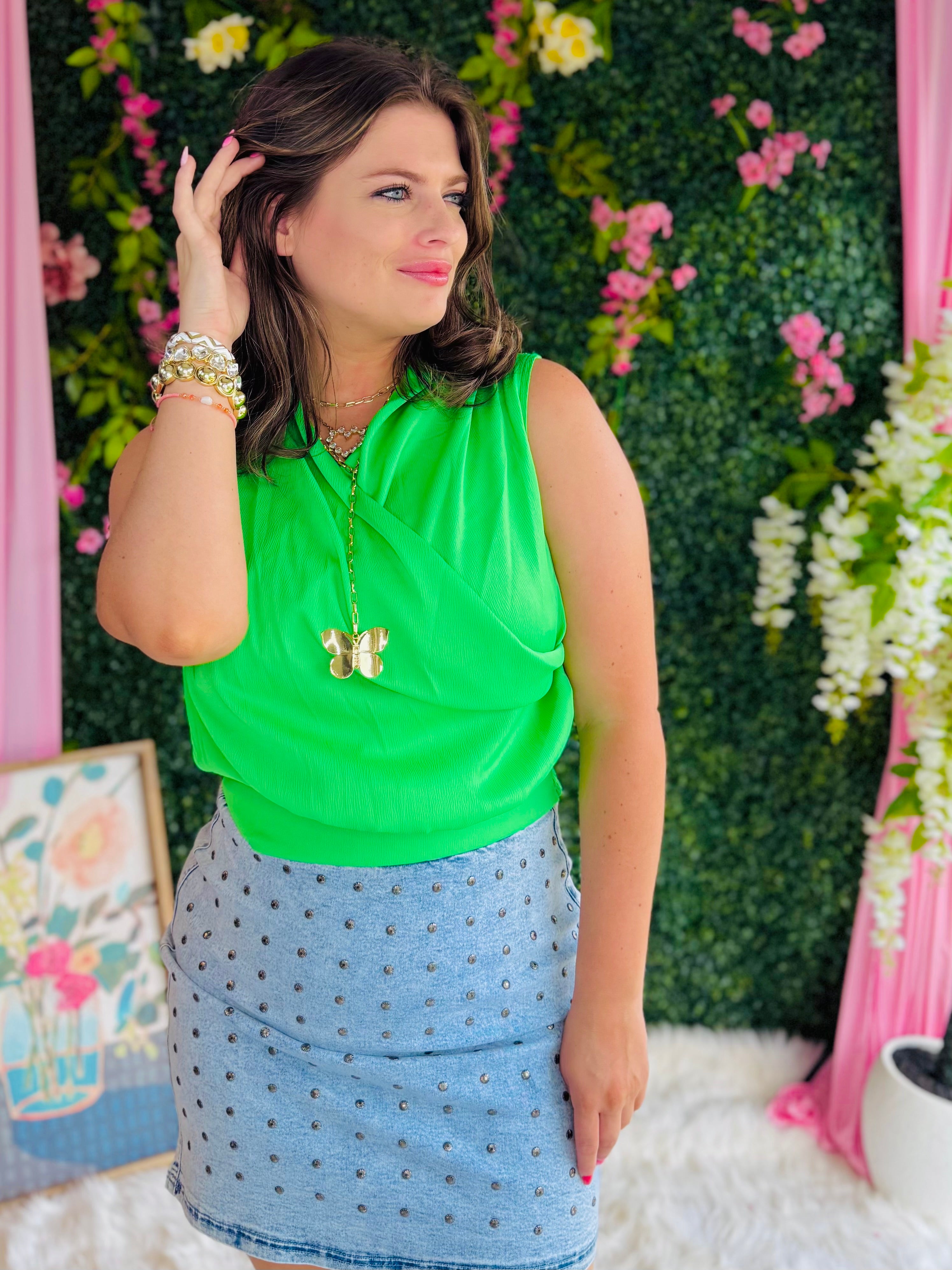 Green Draped Surplice Tank