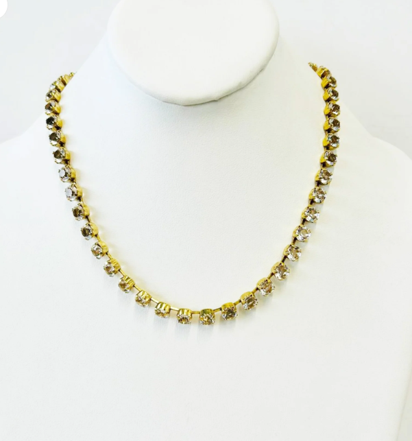 Bring sparkle and shine to any look with this Sarina Necklace in Fairy Dust / Unfoiled, featuring antique gold plating and 6mm high-quality crystals. Its brass base metal and 13" length plus 4" extension, make it the perfect fit for any outfit. Shine on, sweetie!