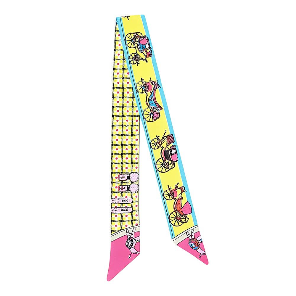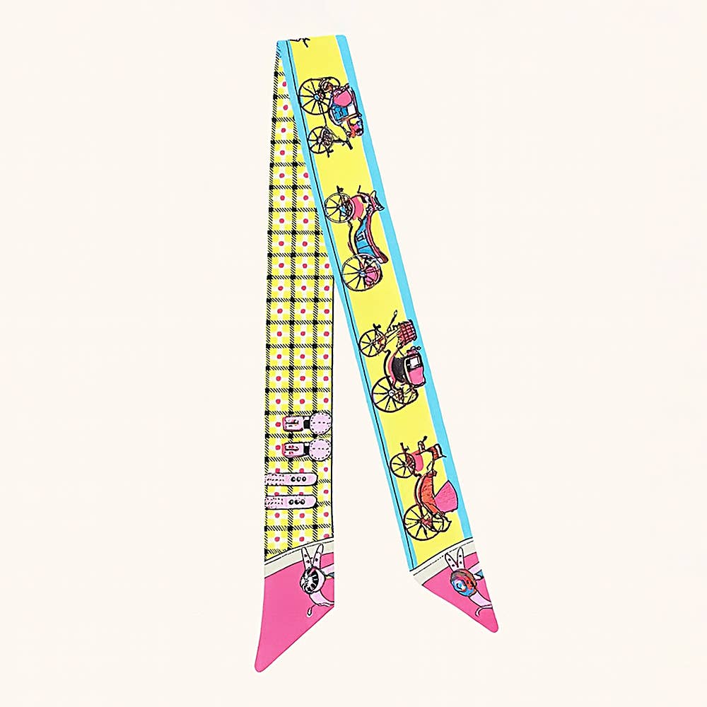 Vintage Charm Carriage Skinny Scarf - Yellow