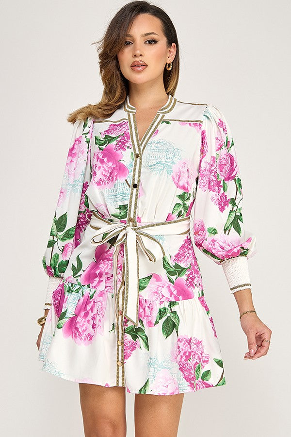 Lightweight and easy to style, this floral mini dress pairs perfectly with heels, sandals, or boots for a trendy boutique look. If you're searching for a magenta floral dress, belted mini dress, spring and summer dress, or chic boutique outfit, this piece is a must-have.