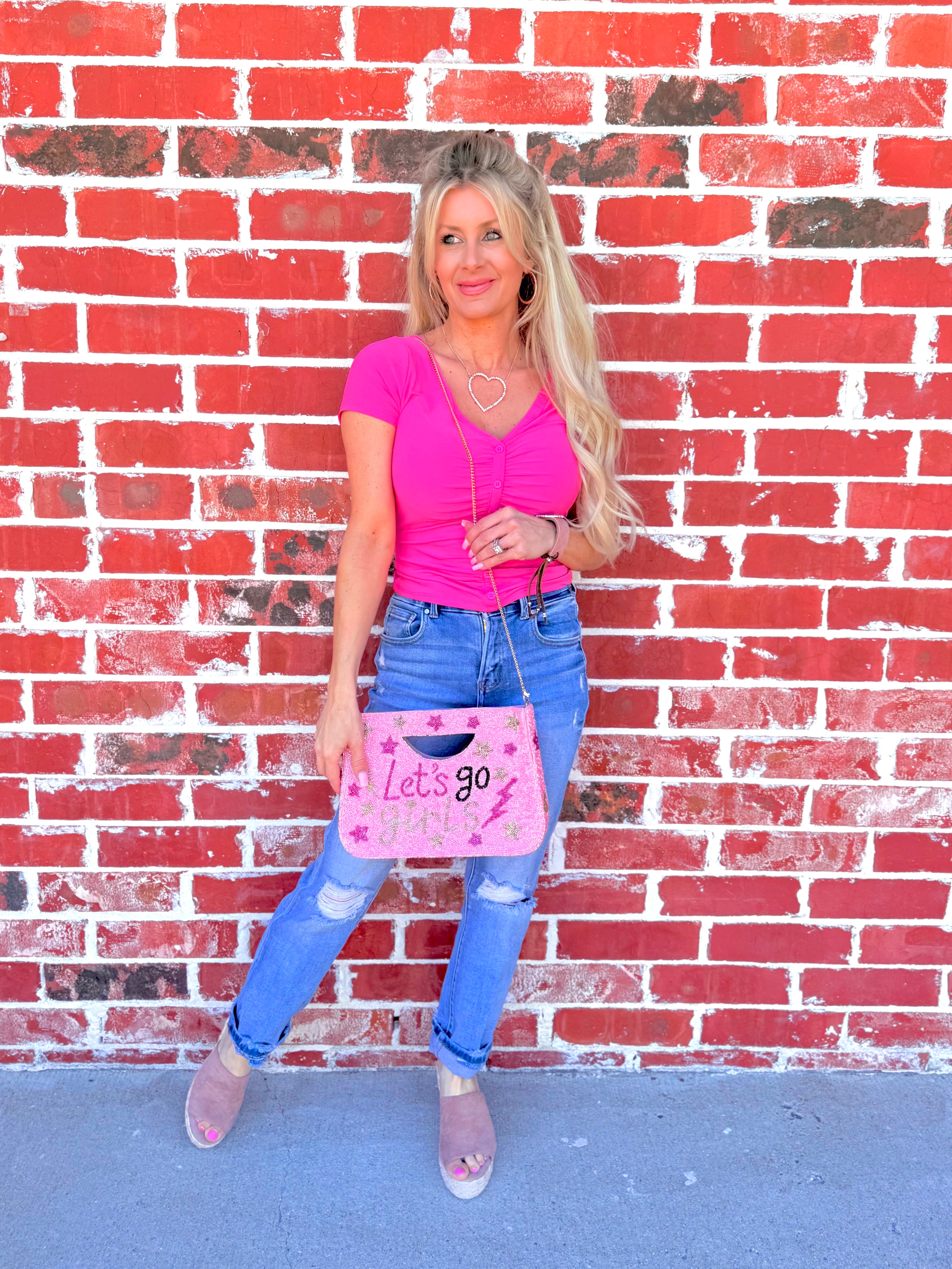 Buttercup Bliss Ruched Button Down Top - Fuchsia