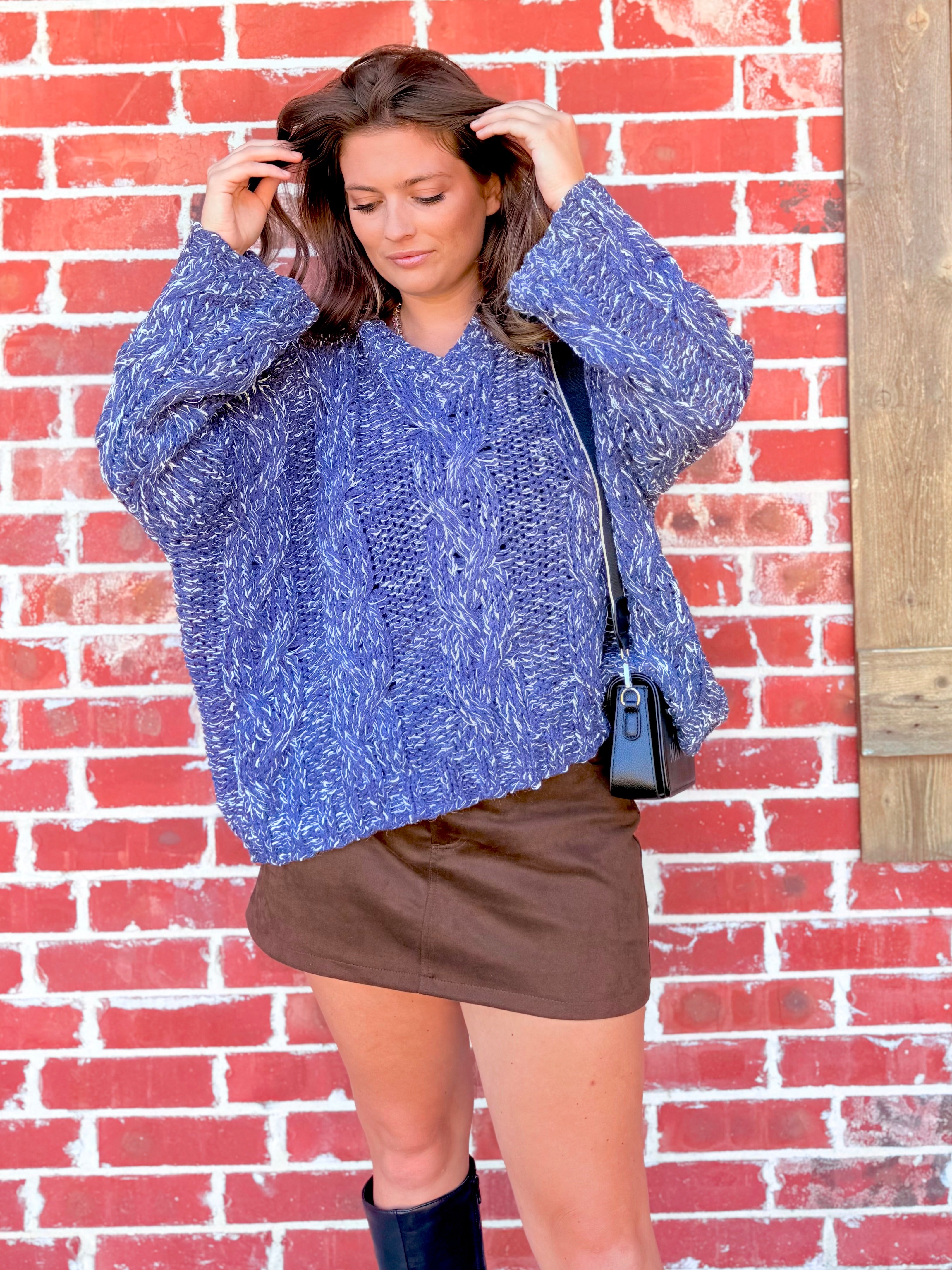 A warm and cozy heathery navy knit sweater with an adorbs hood for extra fancy feelin's and style! You'll look like a fashion star without sacrificing an ounce of comfort! Layer it up for a look that can take you from the streets to the 'gram in no time.