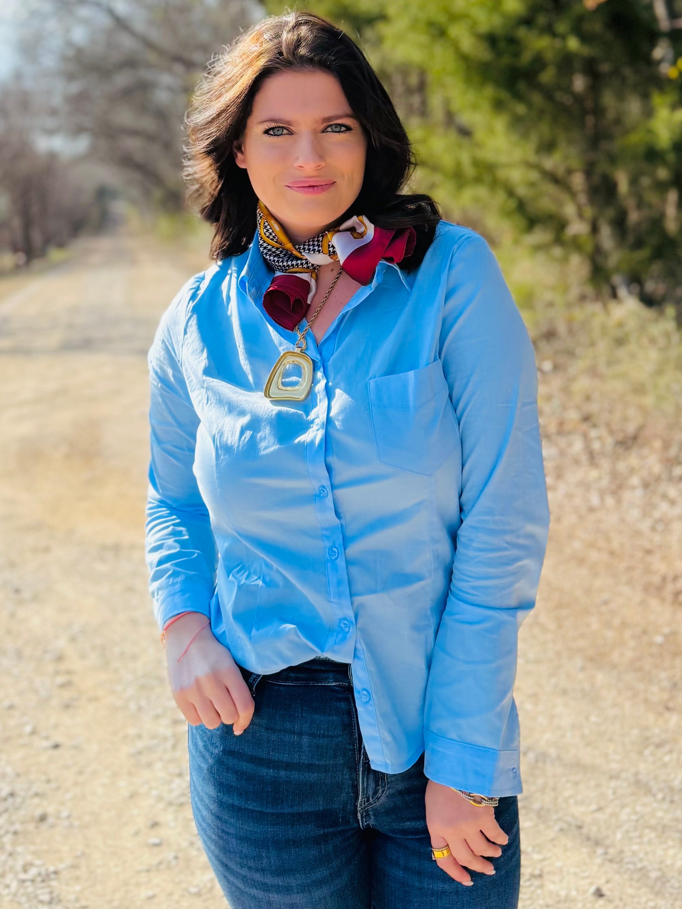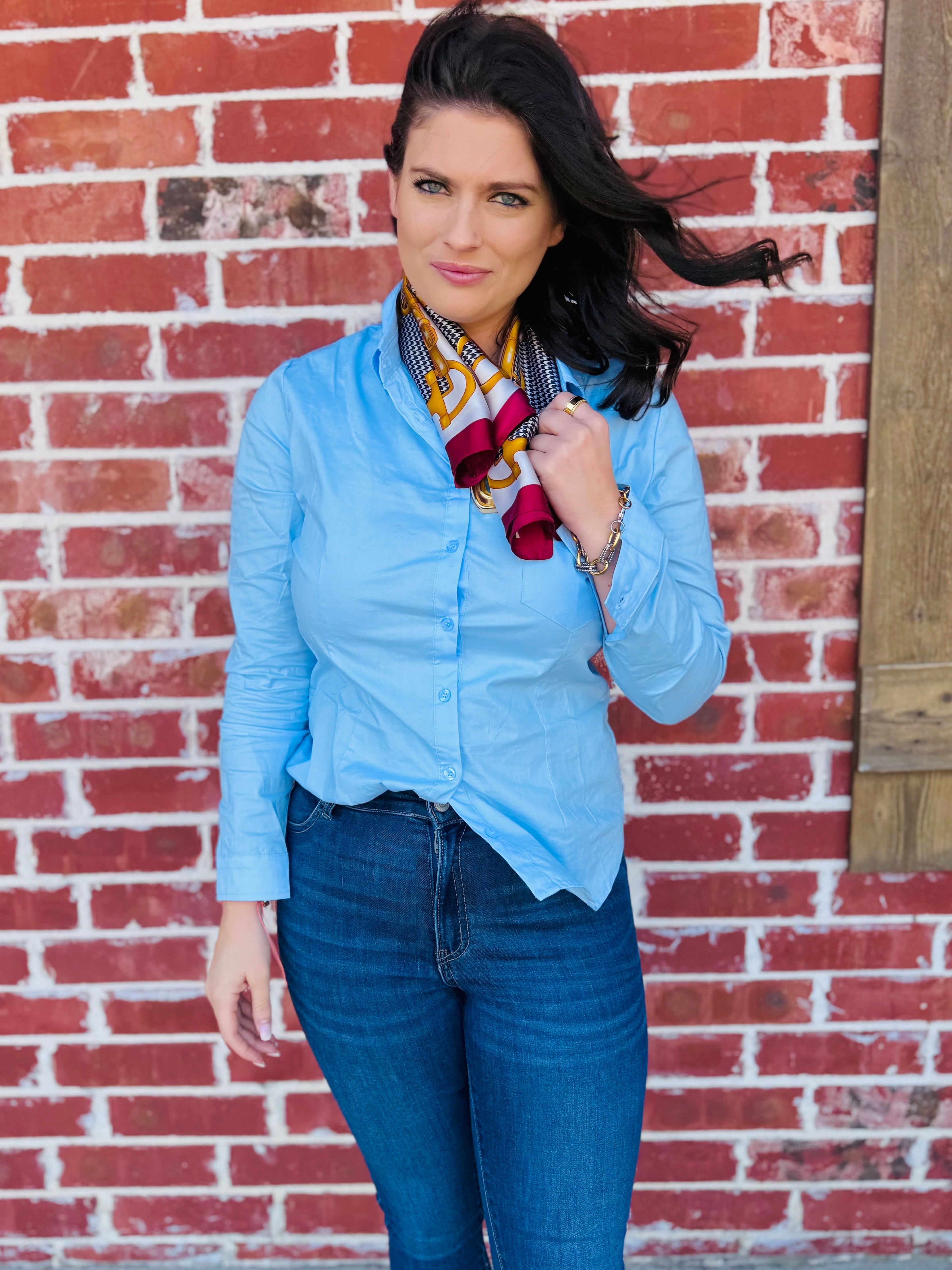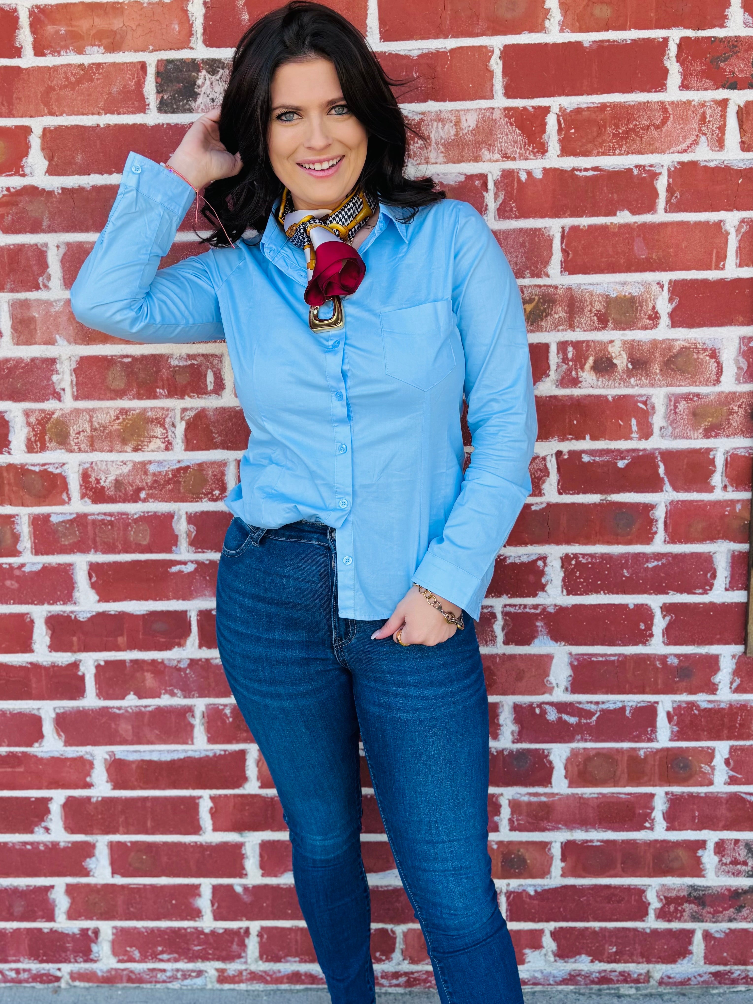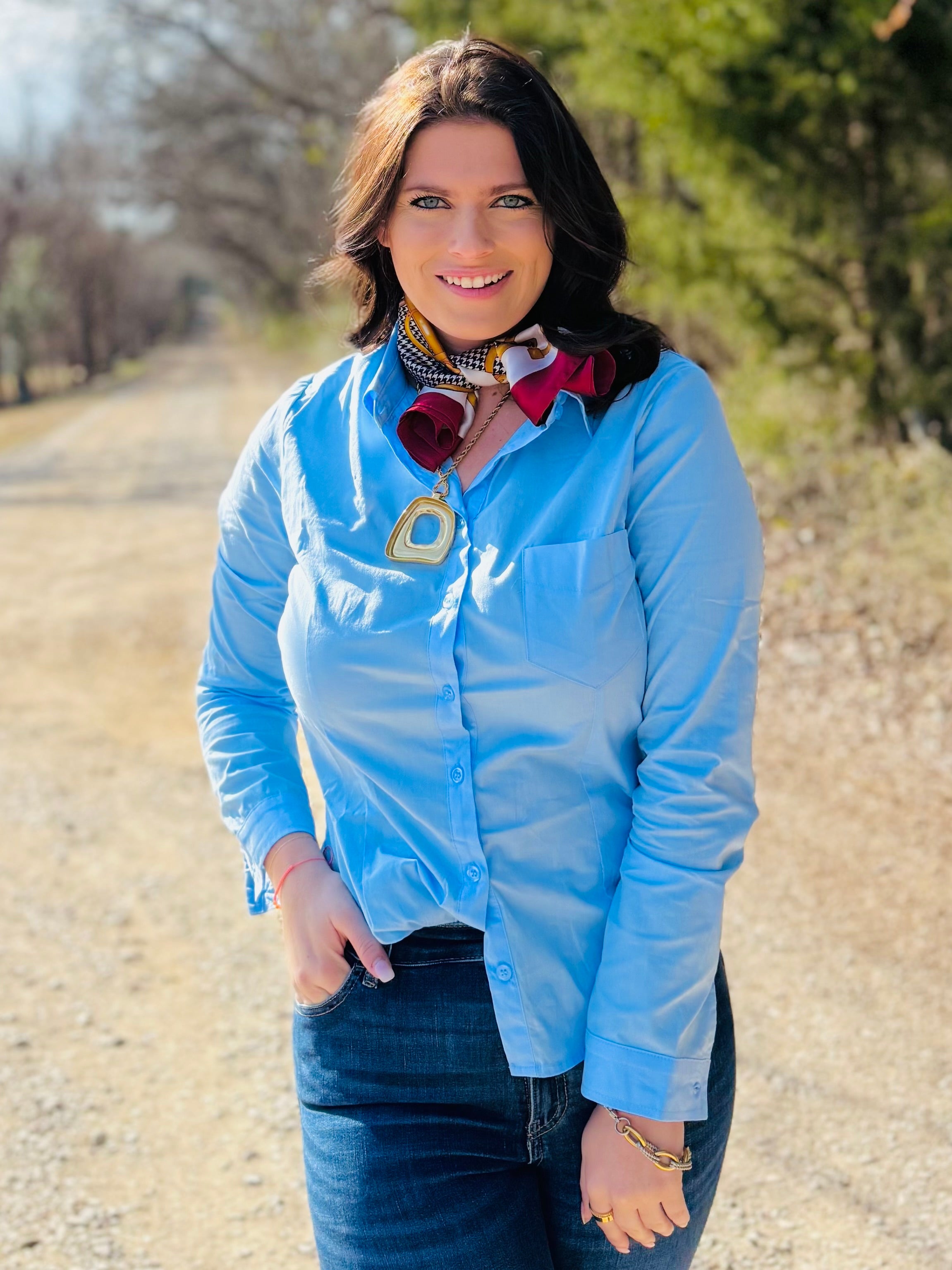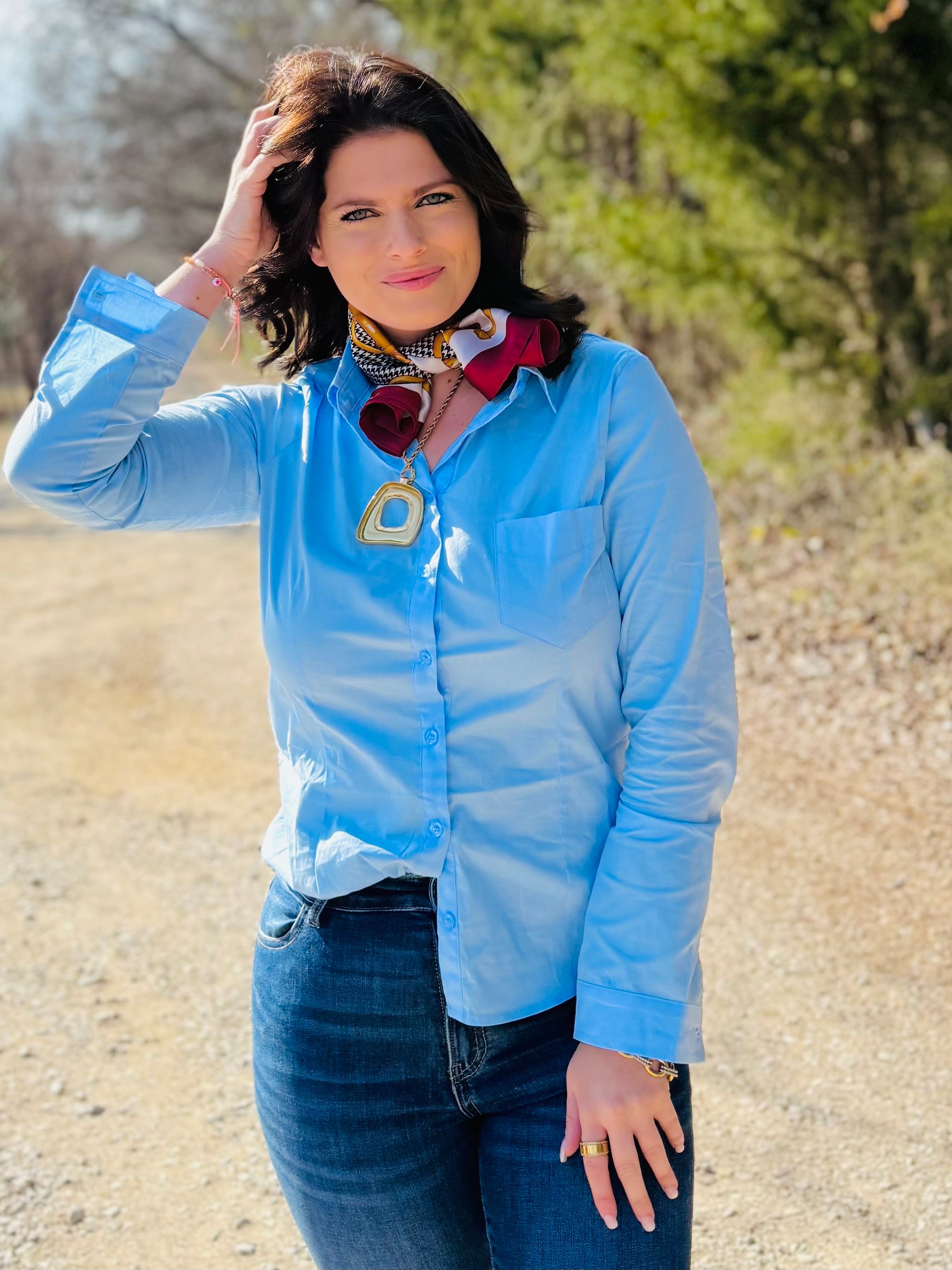 A timeless wardrobe essential with a modern boutique twist 🤍 This long sleeve button-down shirt is crafted from soft stretch poplin for a comfortable, flattering fit that moves with you. Designed with a classic collar and clean lines, it’s perfect for effortless layering or polished stand-alone styling. Whether dressed up with trousers or worn casually with denim, this versatile piece delivers all-day comfort with refined, everyday elegance ✨