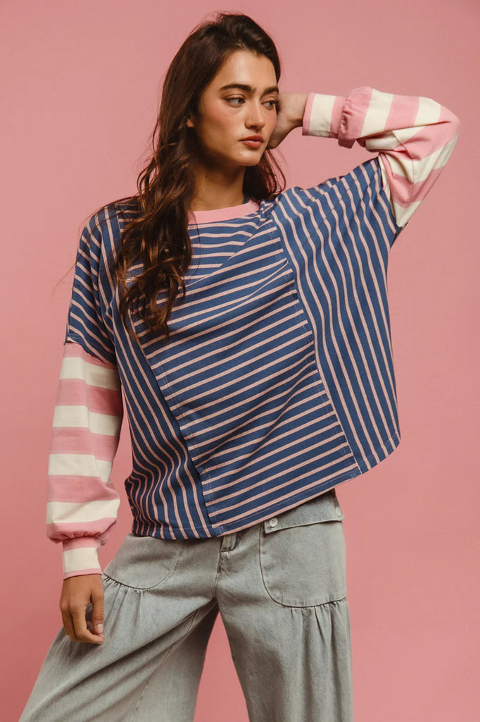 Fuchsia Summer Chic Stripe Bow Blouse