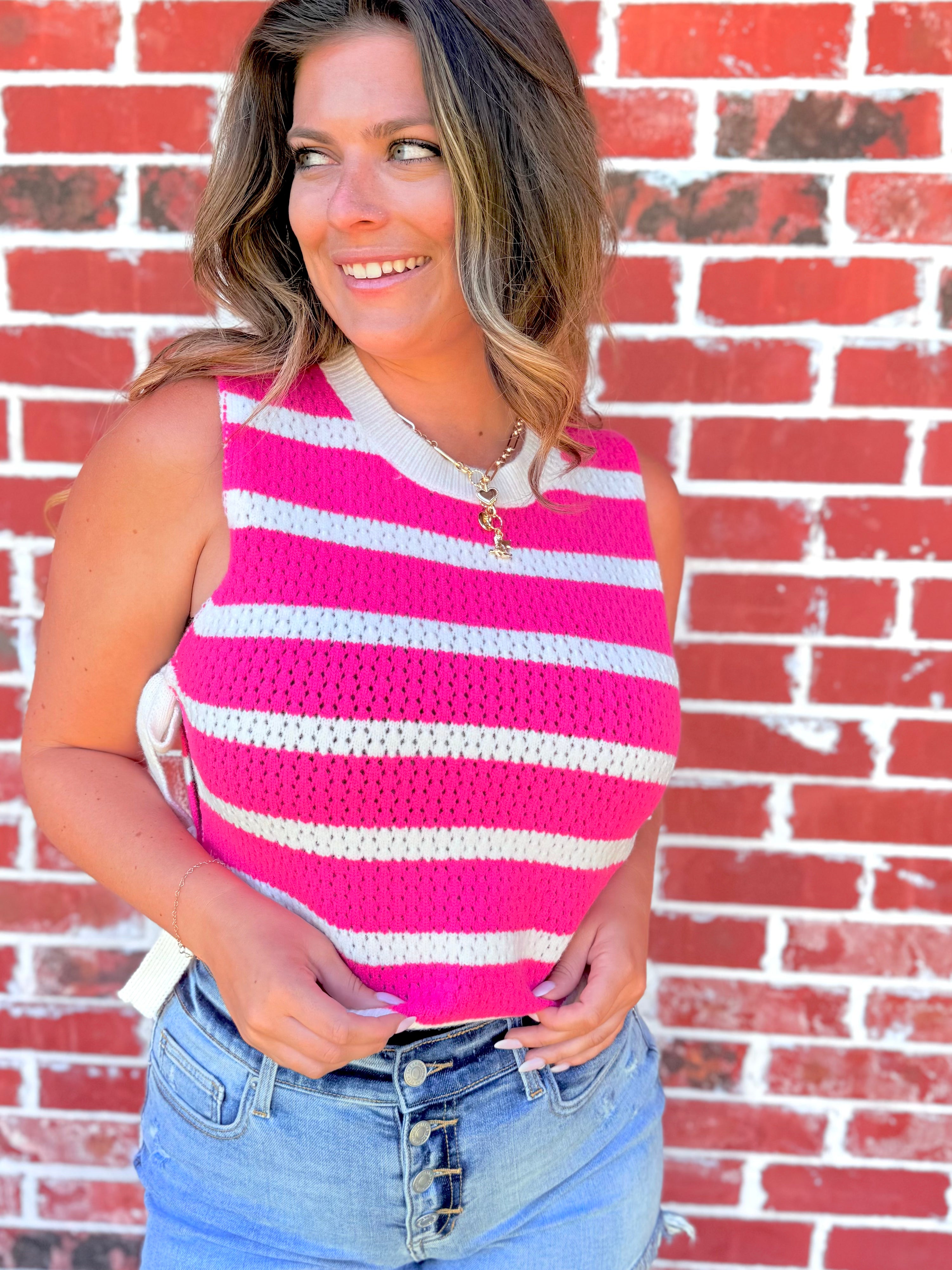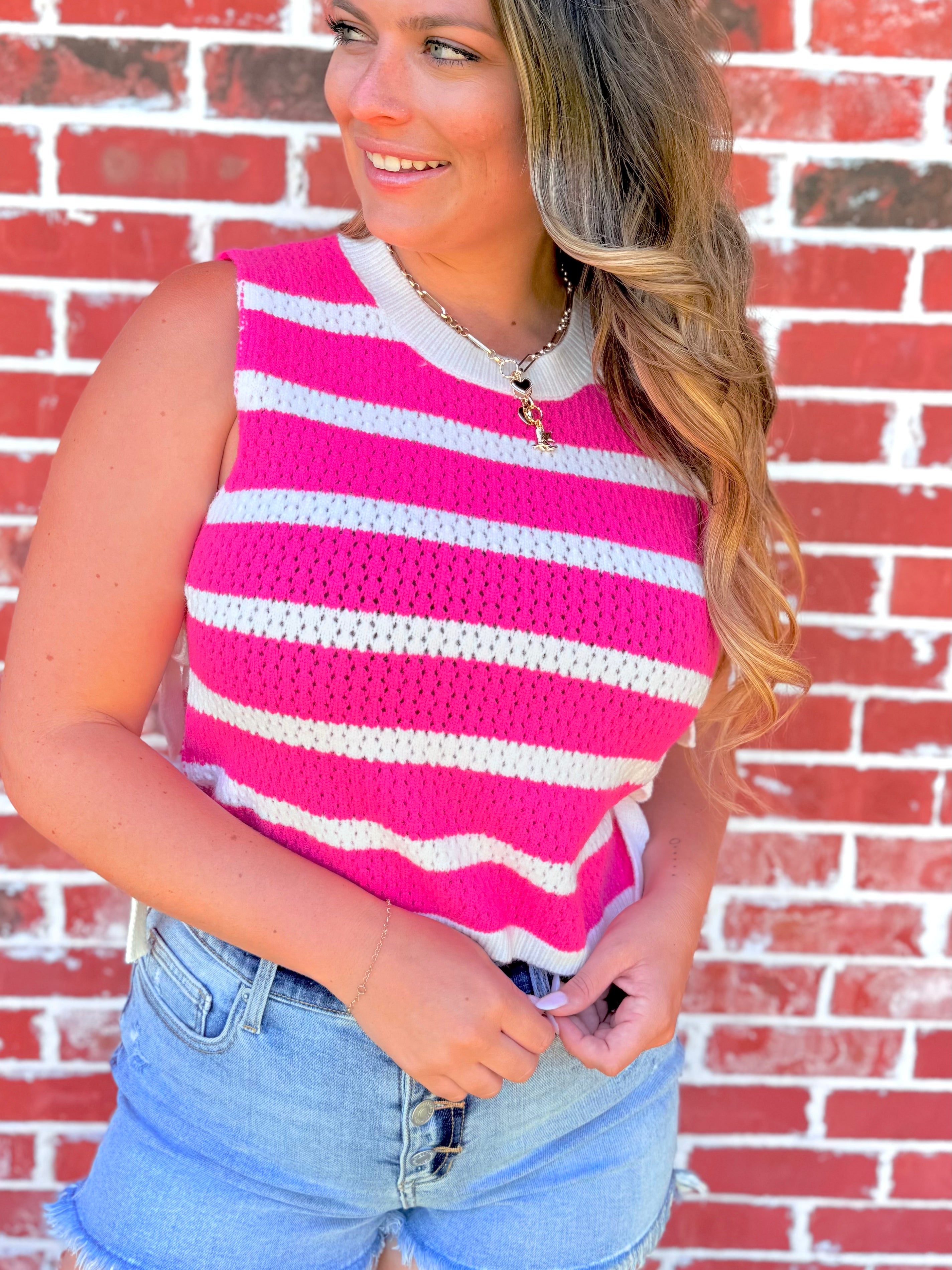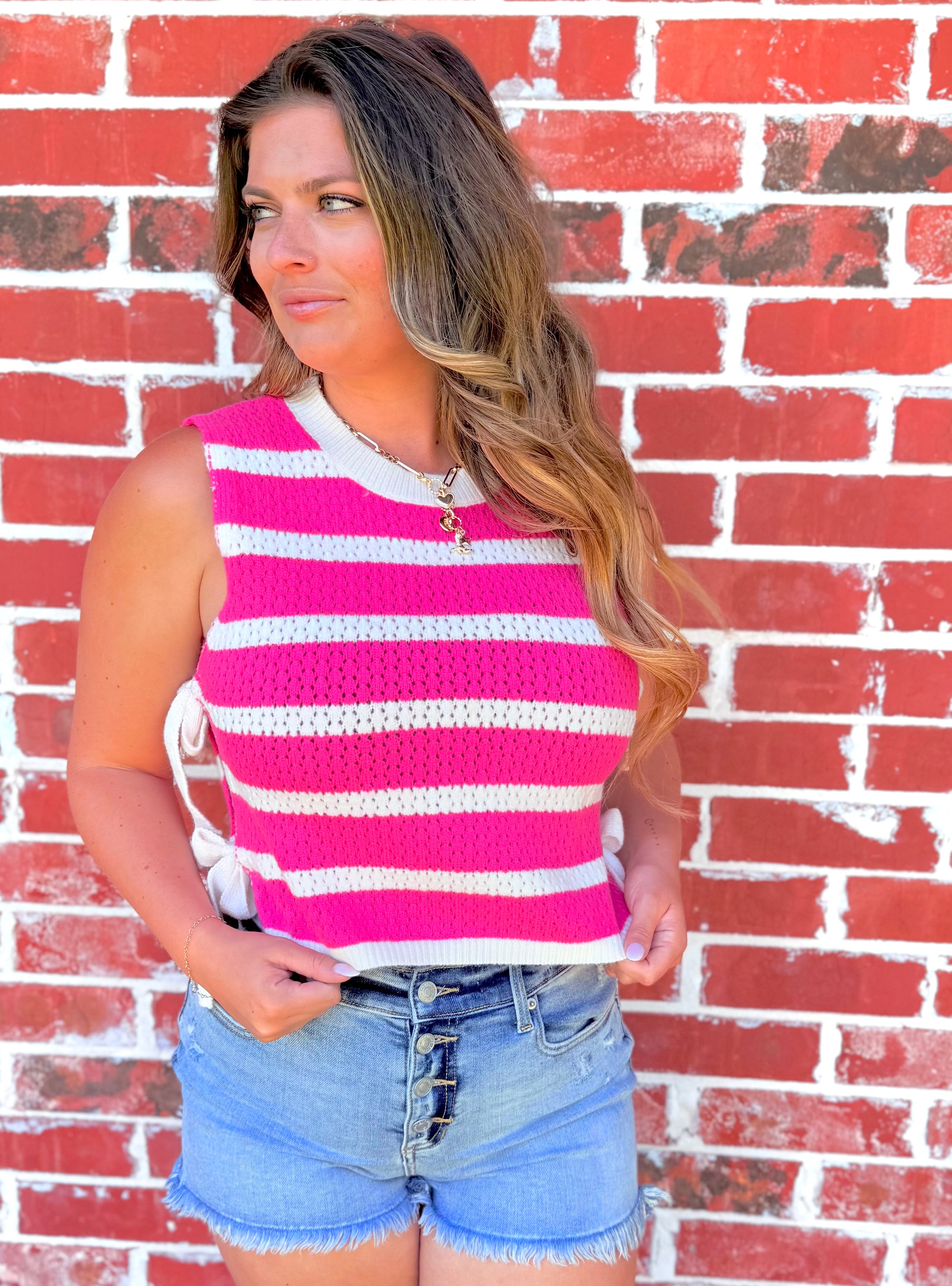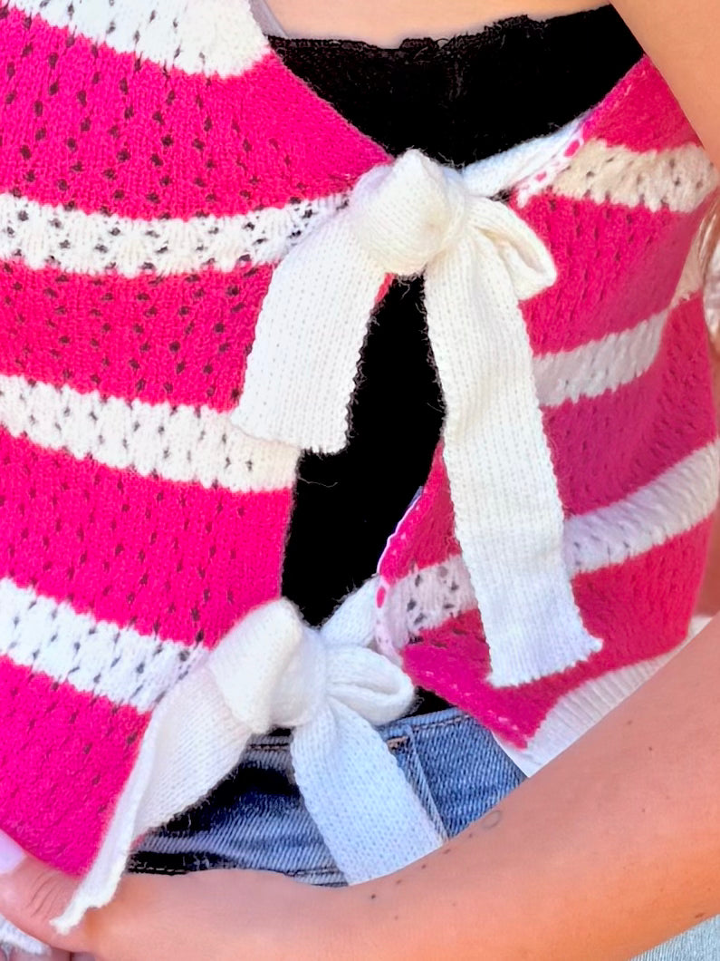 TEXTURED STRIPE SIDE TIED VEST TOP 65%ACRYLIC 20%POLYAMIDE 15%POLYESTER