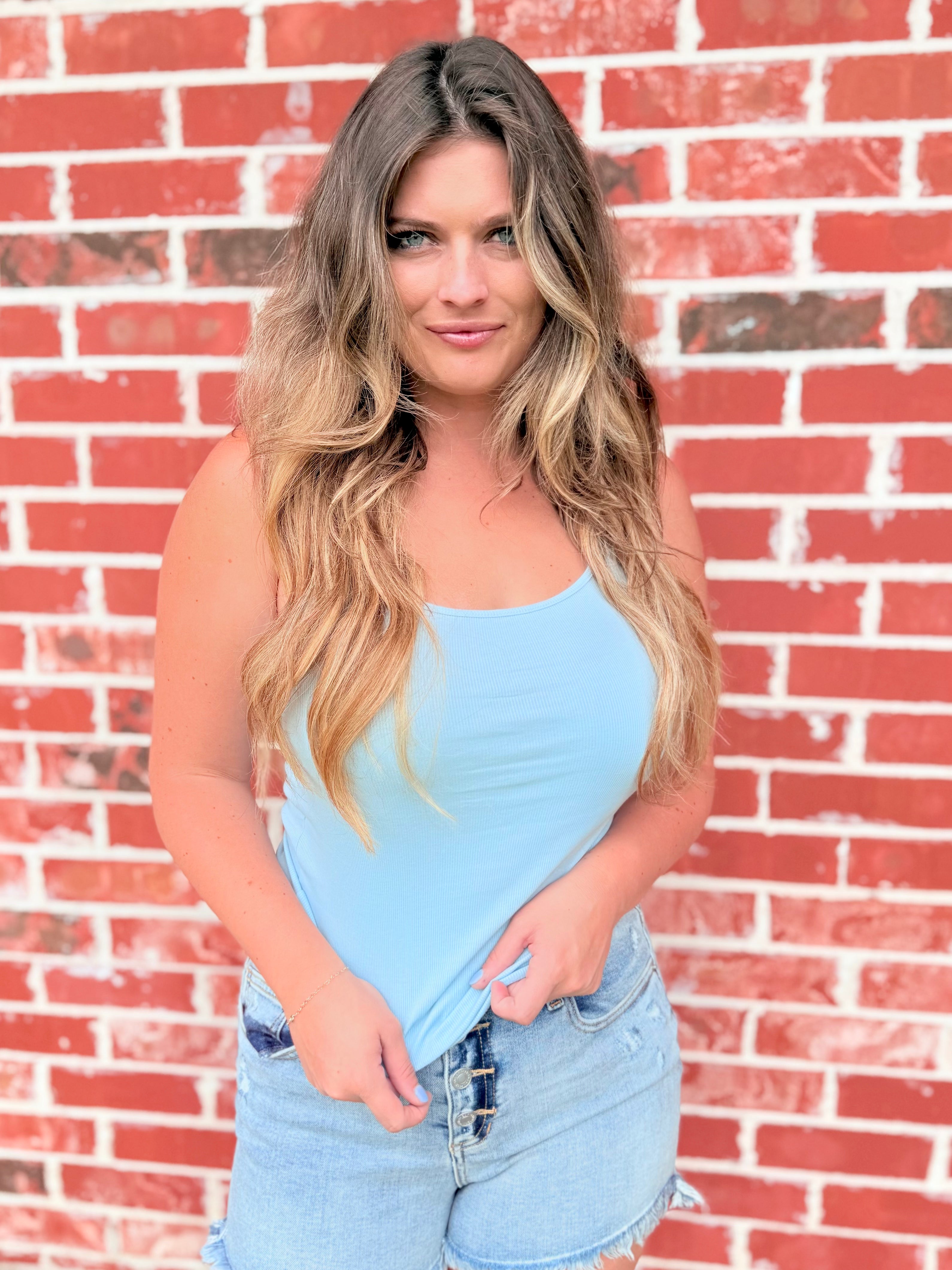 Elevate your style with the Sky Clean Slate Ribbed Tank! Its sleek design and ribbed texture will add a touch of sophistication to any outfit. Perfect for any occasion, this tank is a must-have for any fashion-forward individual.