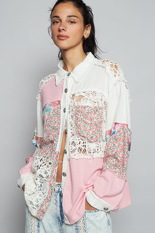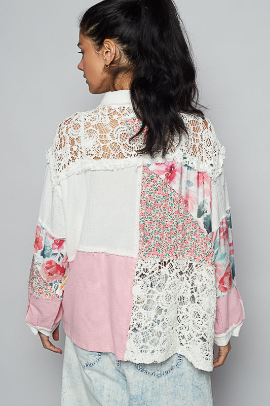 Chic Spring Pink Floral laced Blouse by Peach Love