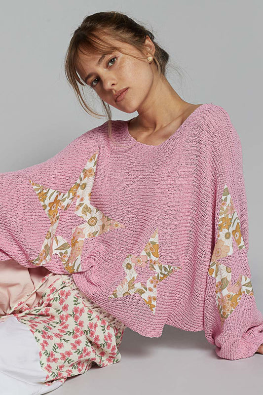 Loose Fit Low Gauge Sweater Top - Fuchsia