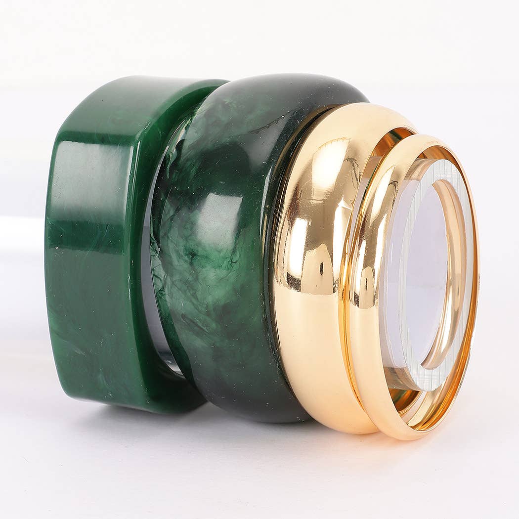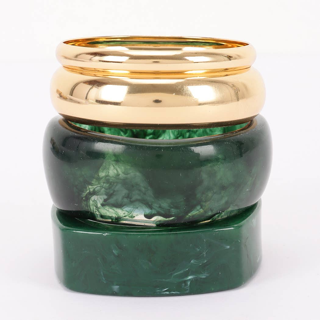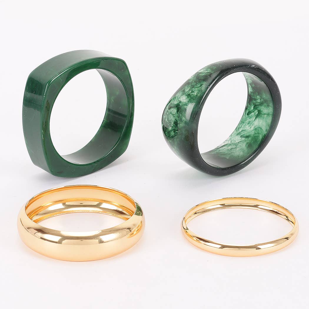 * Multi Mixed - Material Bracelet * 3 x 3" Approx * This is a set of Multi Mixed - Material Bracelet. From H&D Accessories, it showcases a blend of diverse materials. One bracelet has a shiny, metallic surface, while others present a smooth, patterned texture. These bracelets can be stacked to create a stylish and layered appearance. They are perfect for adding a touch of elegance to your look when you're going to a dinner party or a gallery opening, making your outfit stand out with a unique charm.