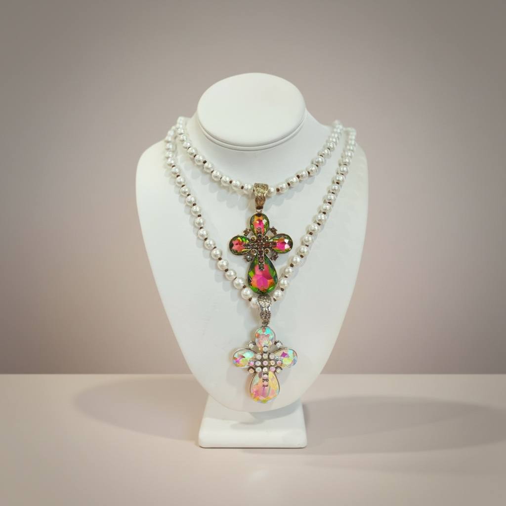 The soft luster of the pearls adds a touch of sophistication, while the eye-catching cross pendant makes this necklace a standout accessory for both everyday wear and special occasions.