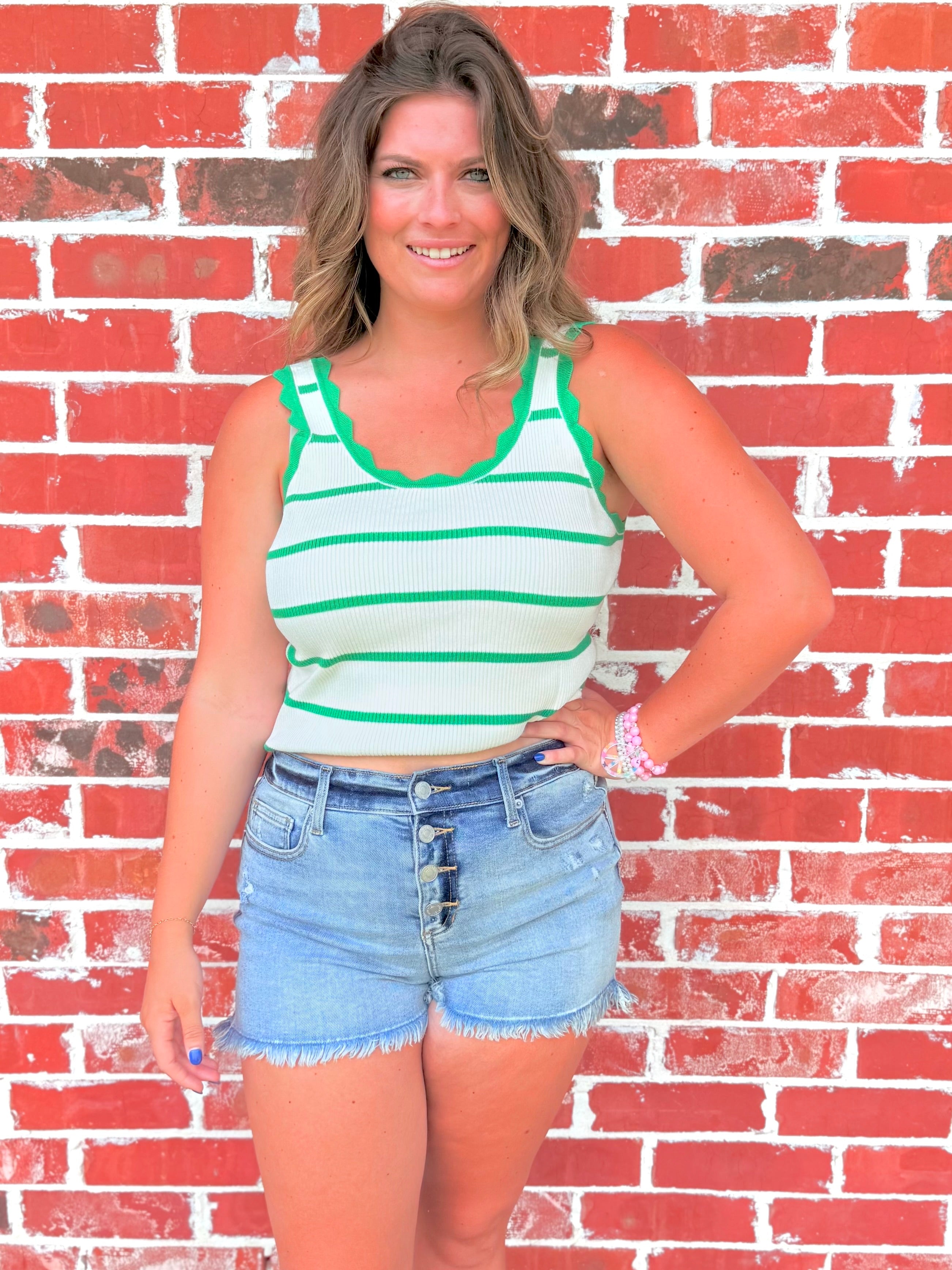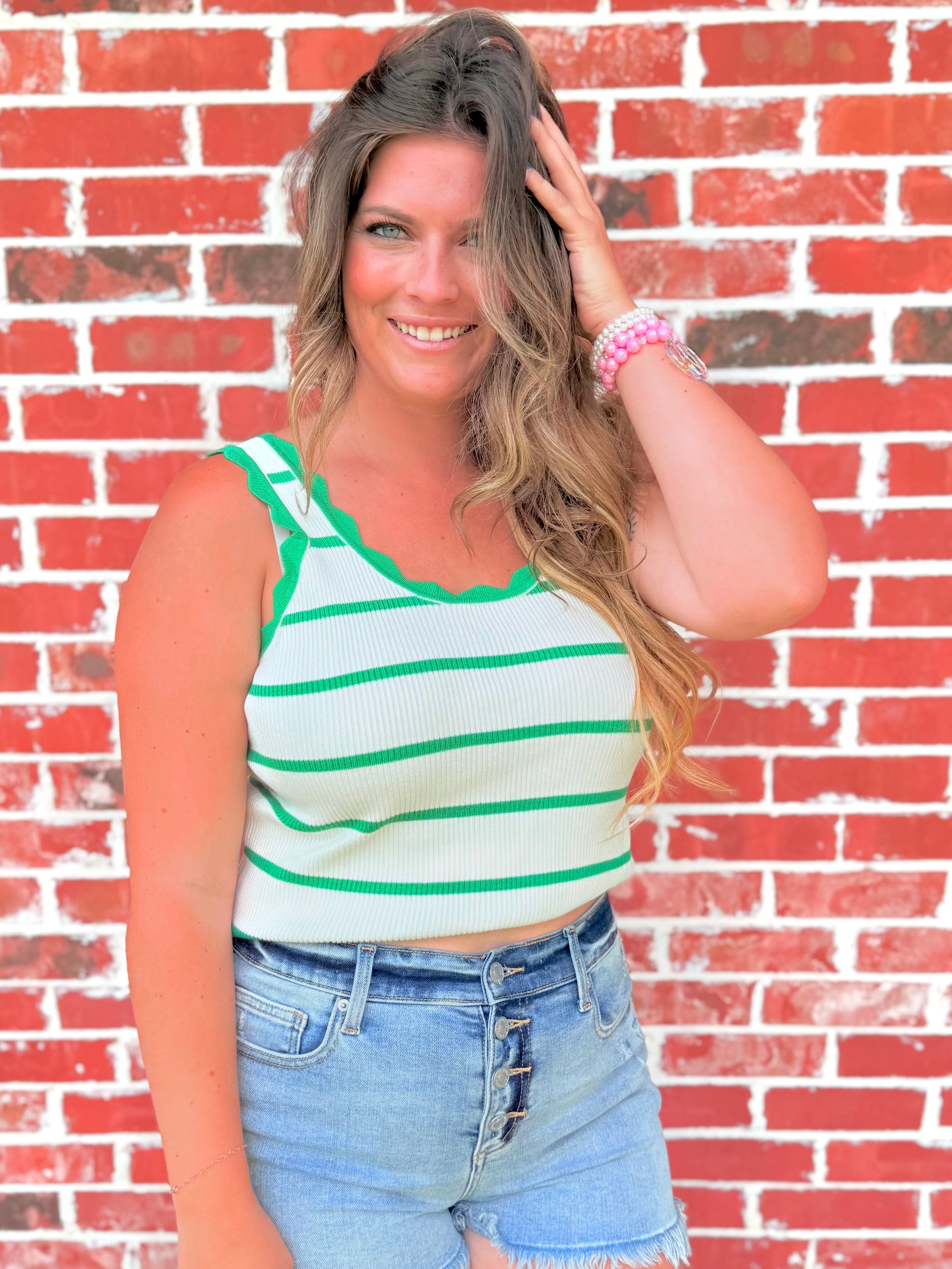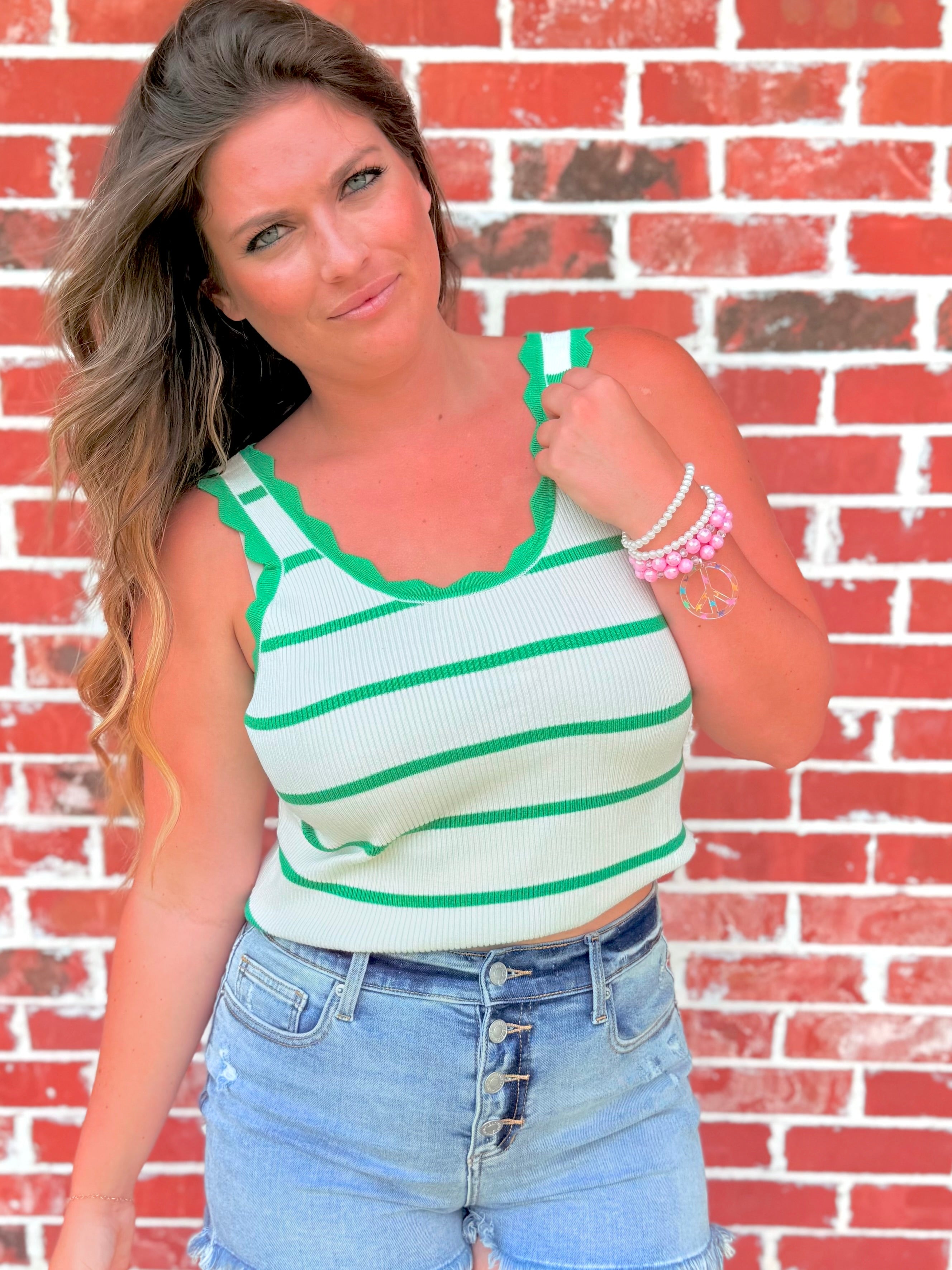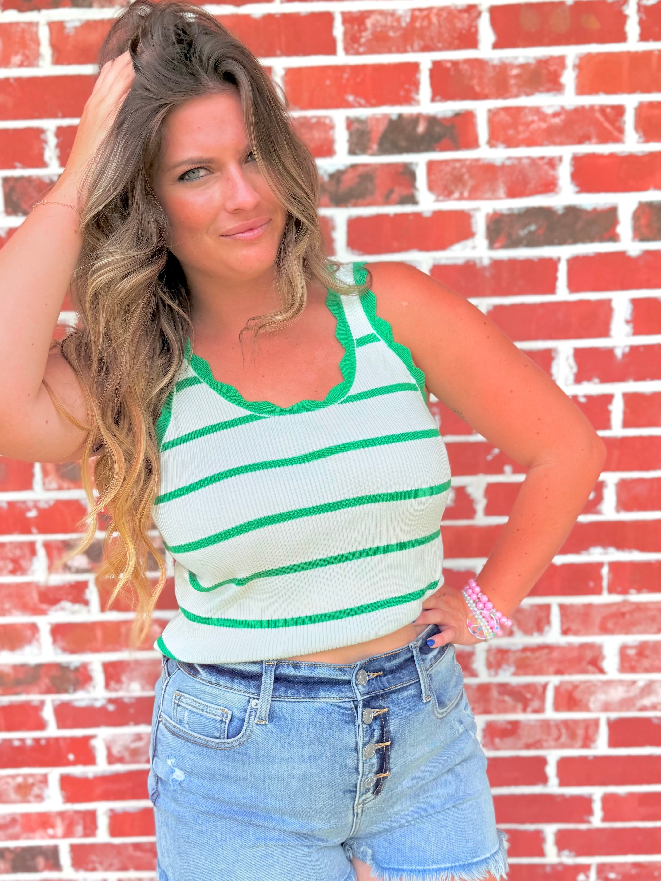 Add a charming twist to your everyday look with this Scalloped Edge Striped Knit Tank 🌸. Designed with delicate scalloped trim for a feminine finish, this piece blends elegance and comfort in all the right ways.