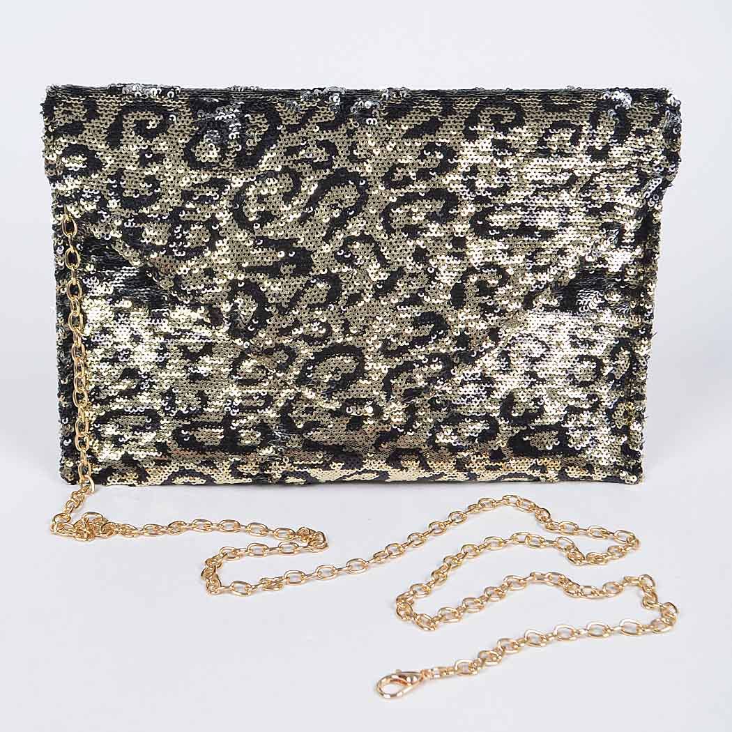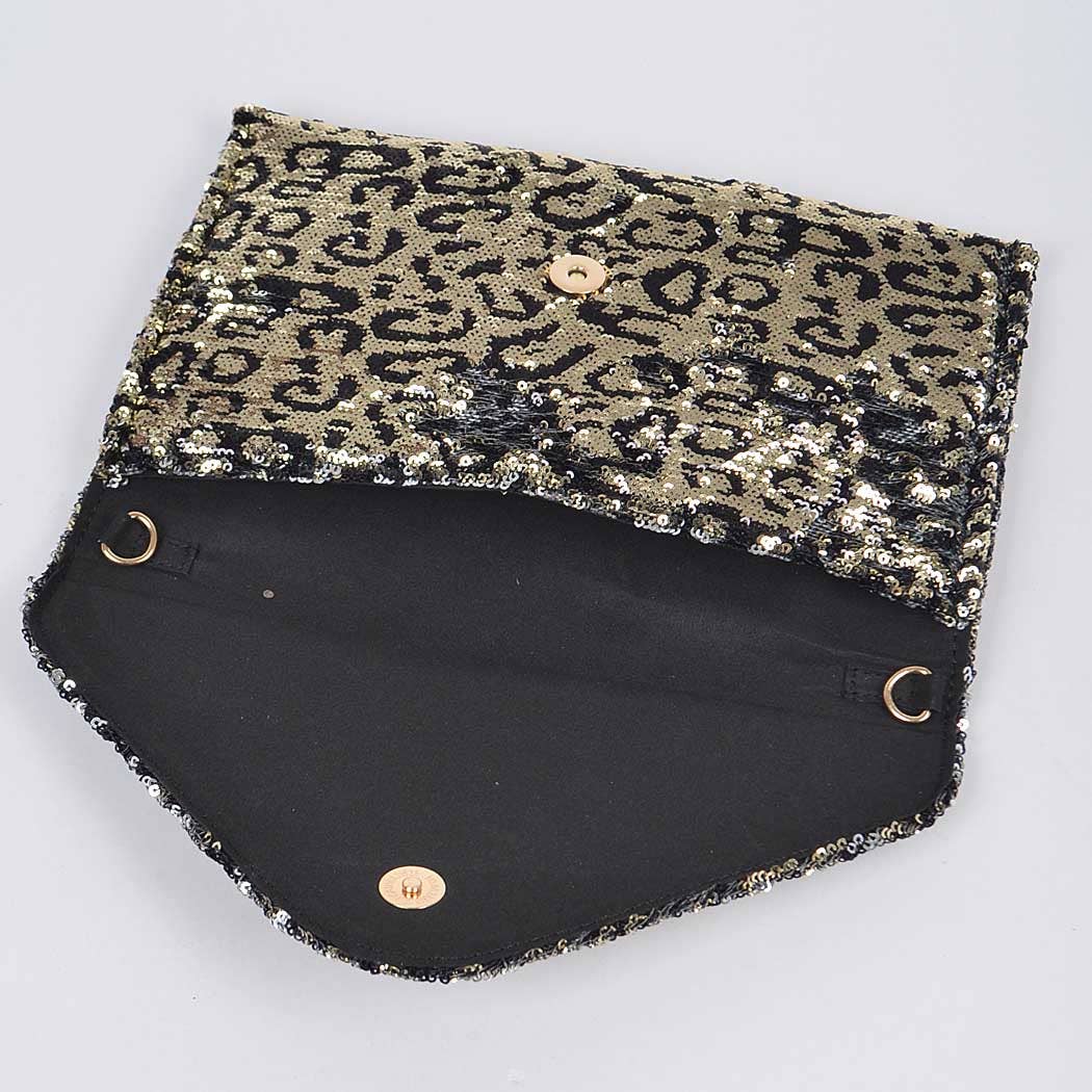 Wild Spark Sequin Leopard Clutch