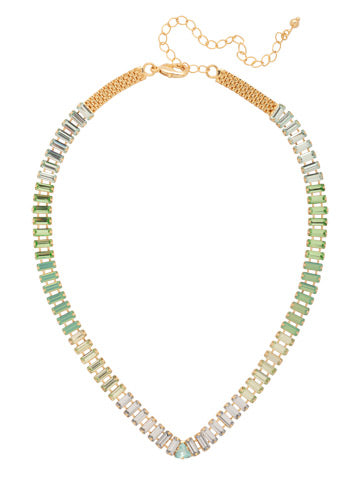 The Bianca Tennis Necklace features a line of baby baguette-cut crystals with an adjustable chain, and secured with a lobster claw clasp. (16-20 inches)