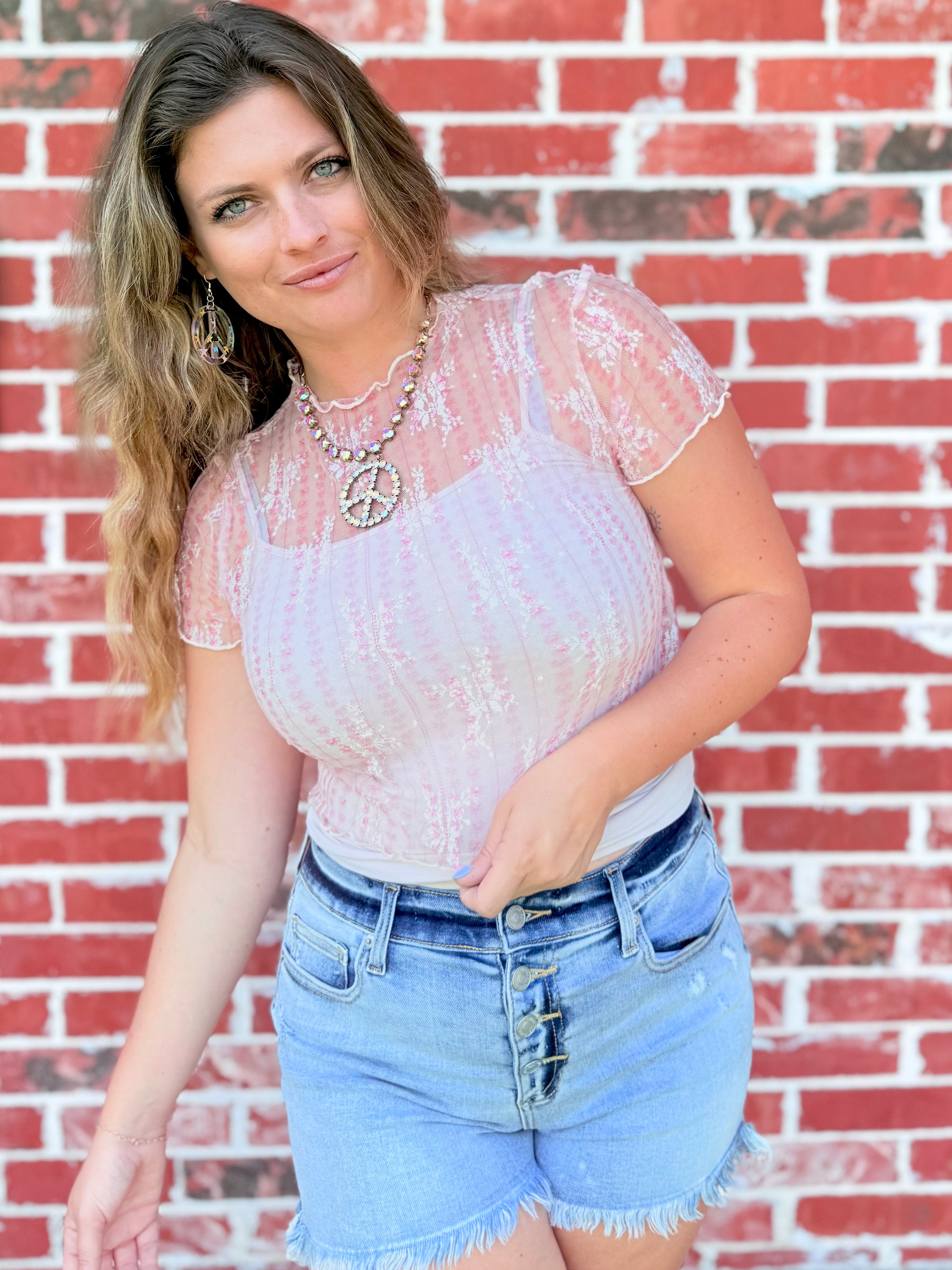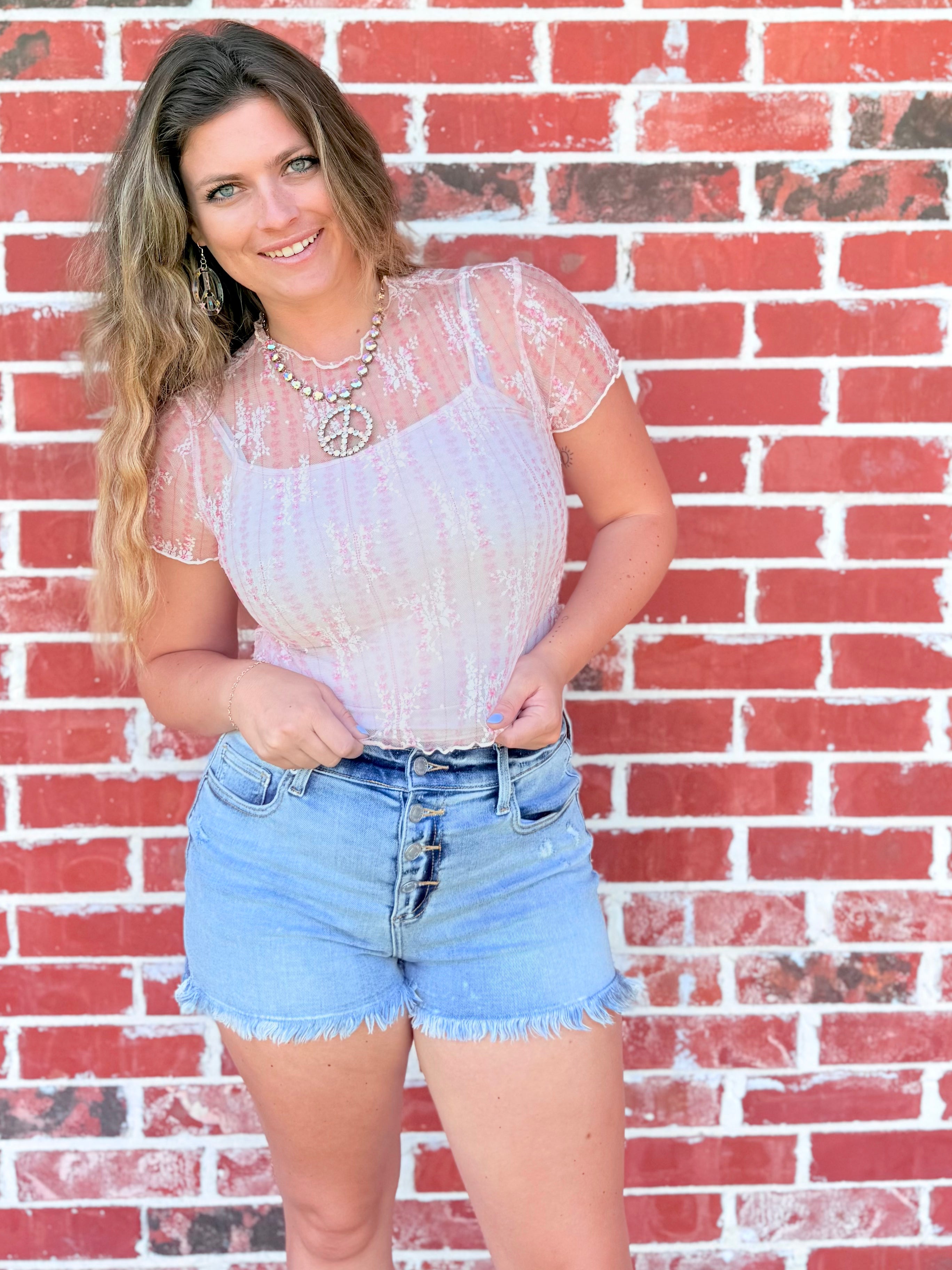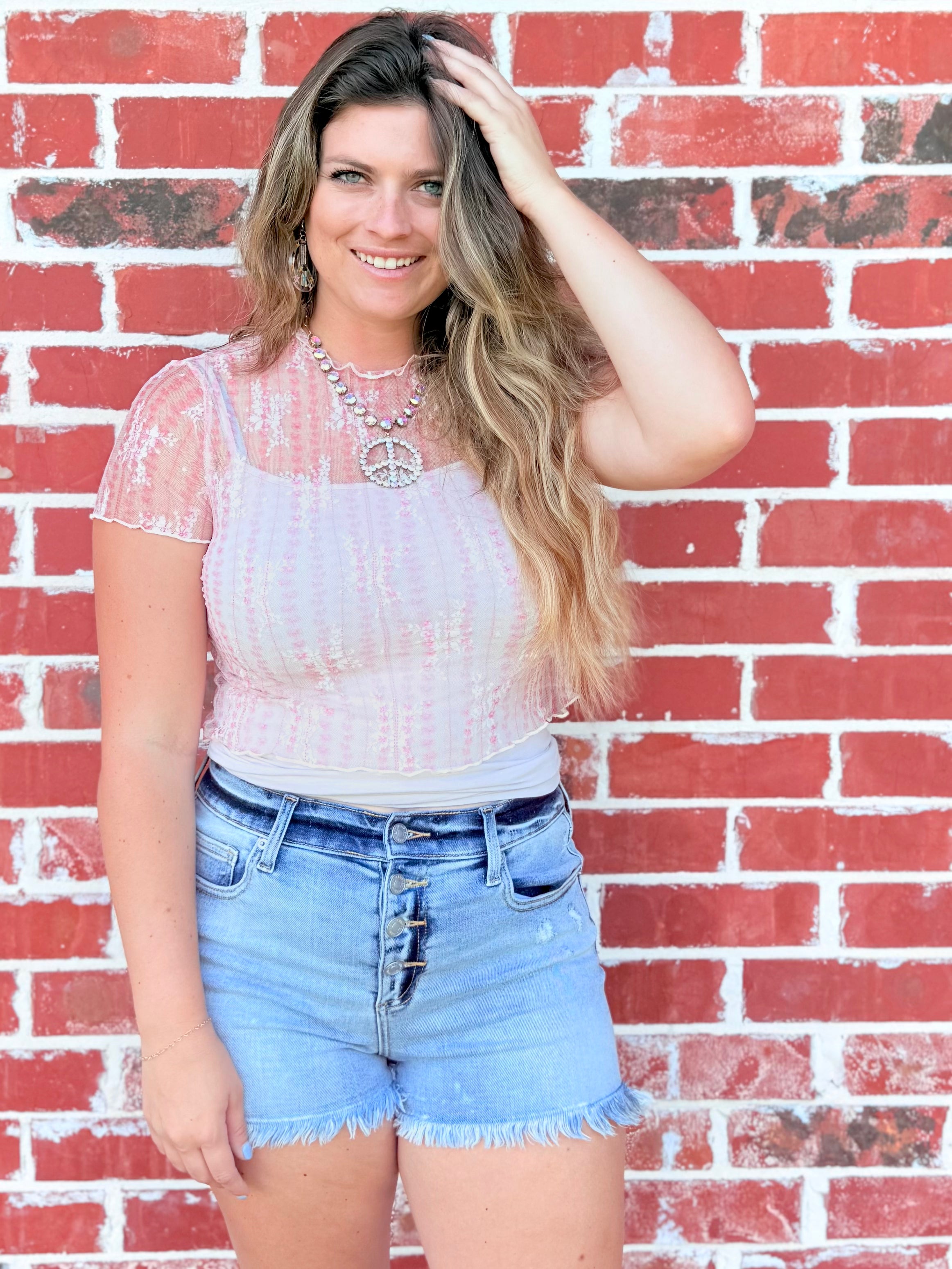Get springtime ready in the sweetest way with our Chic Pink Floral Lace Blouse by Peach Love! 💕 This flirty little top features a delicate floral print, breezy short sleeves, and a romantic mock neck neckline that gives it the perfect mix of girly charm and modern style.